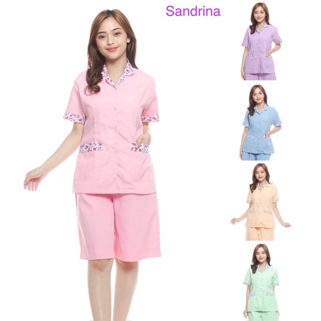 [Sandrina] Baju Seragam Suster Kulot/ Baju Baby Sitter/ Baju Nanny (Motif Bunga)