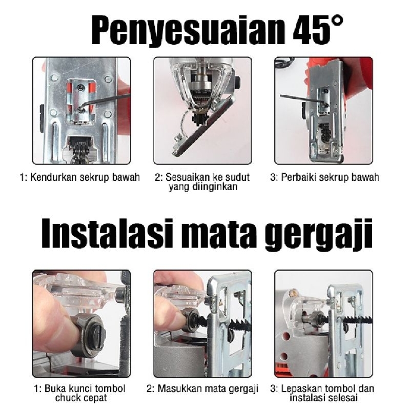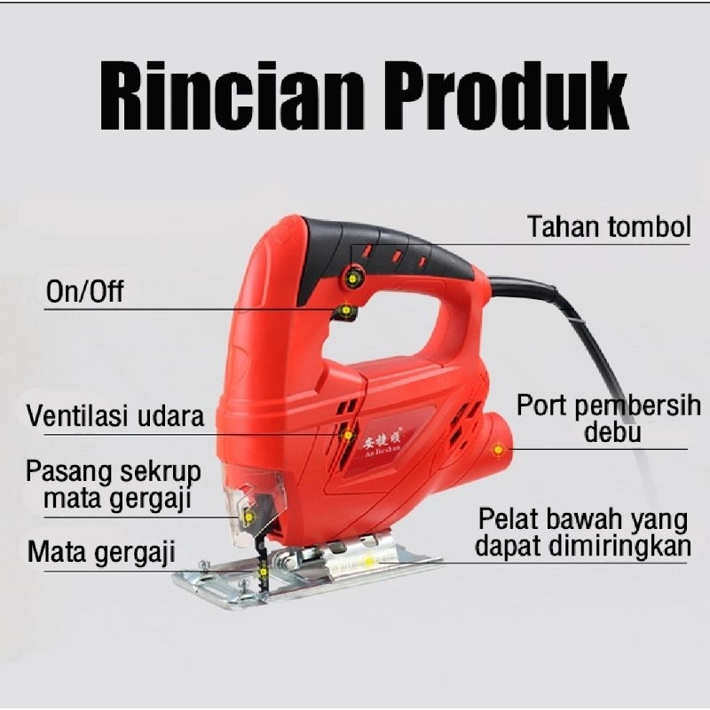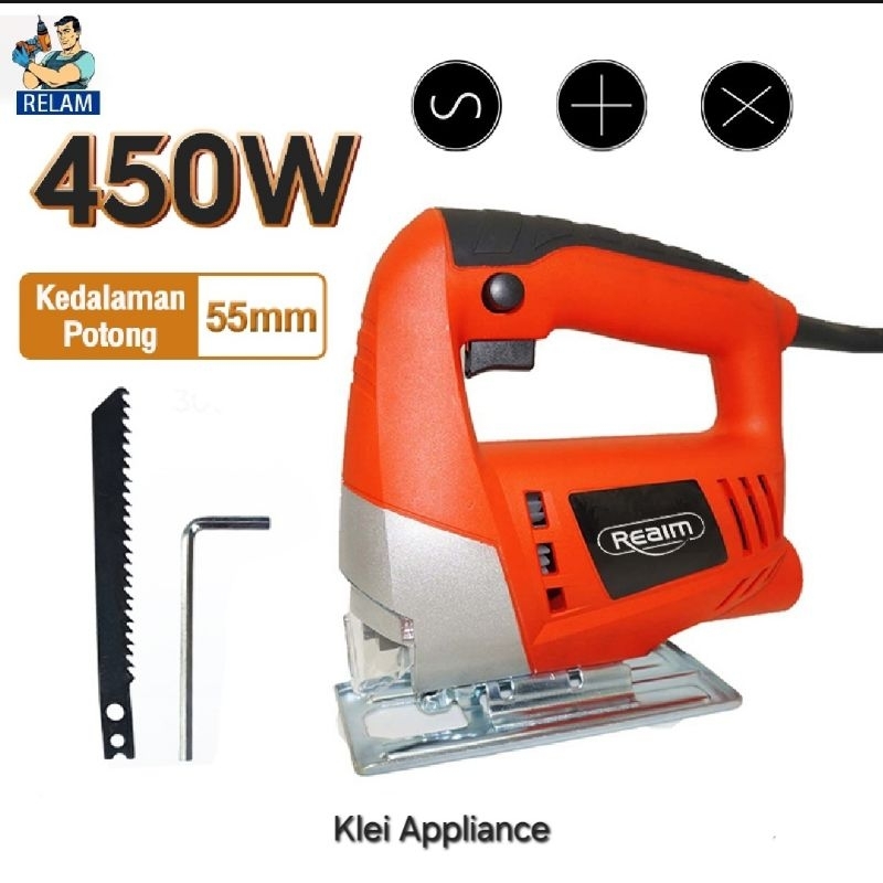 REAIM Mesin Gergaji Jigsaw 400W Kekuatan Tinggi Mesin Gergaji Kayu Jig Saw Mesin Potong Kayu Jigsaw Triplek Potong Kayu Electric Jigsaw
