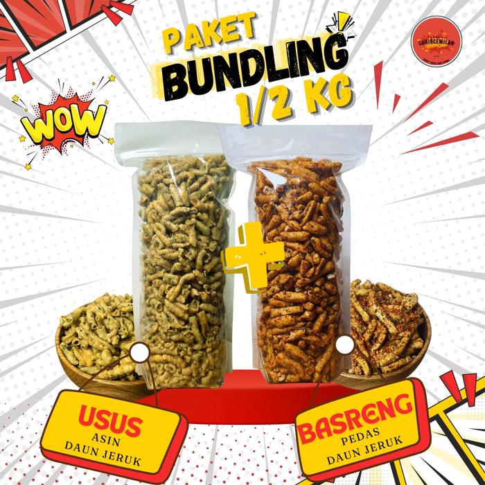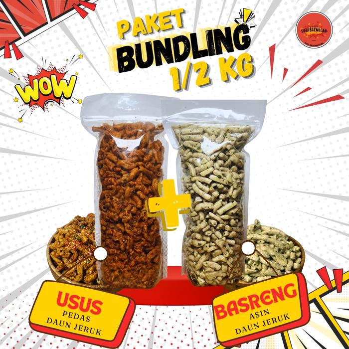 Terlaris PAKET BUNDLING UKURAN 1/2KG USUS & BASRENG PEDAS DAUN JERUK - Usus Pedas & Basreng Pedas Keren