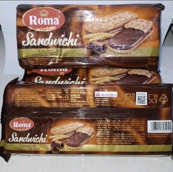 Promo Paket 4pcs Roma sandwichi coklat @157g biskuit dengan krim coklat Cemilan Camilan Food sus Elegan