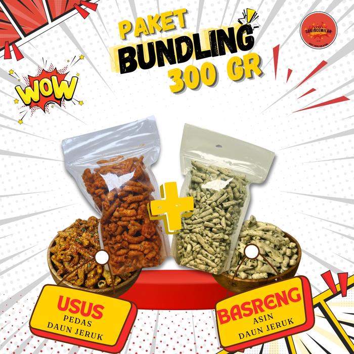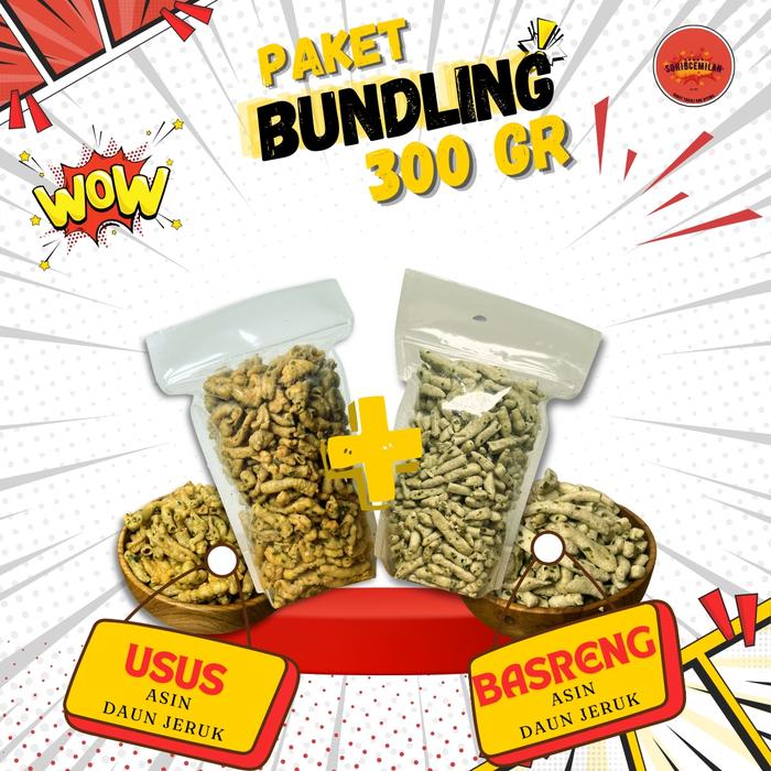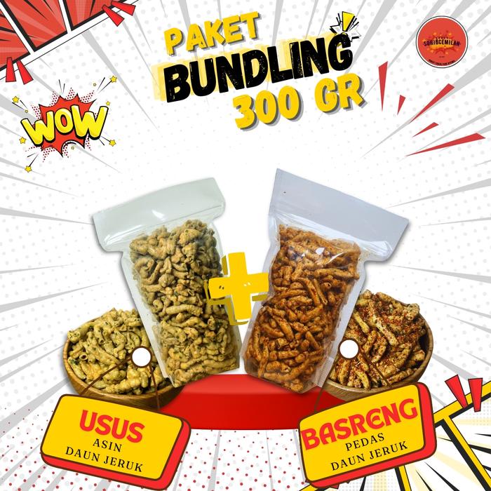 Terlaris PAKET BUNDLING (BASRENG DAN USUS AYAM CRISPY UKURAN 300GR) - Usus Pedas & Basreng Pedas Keren