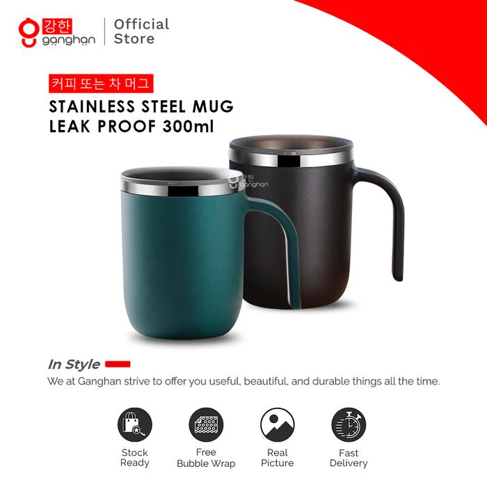 Promo Ganghan Cangkir Gelas Kopi Teh 300ml | Leak Proof Stainless Mug - Hitam Keren