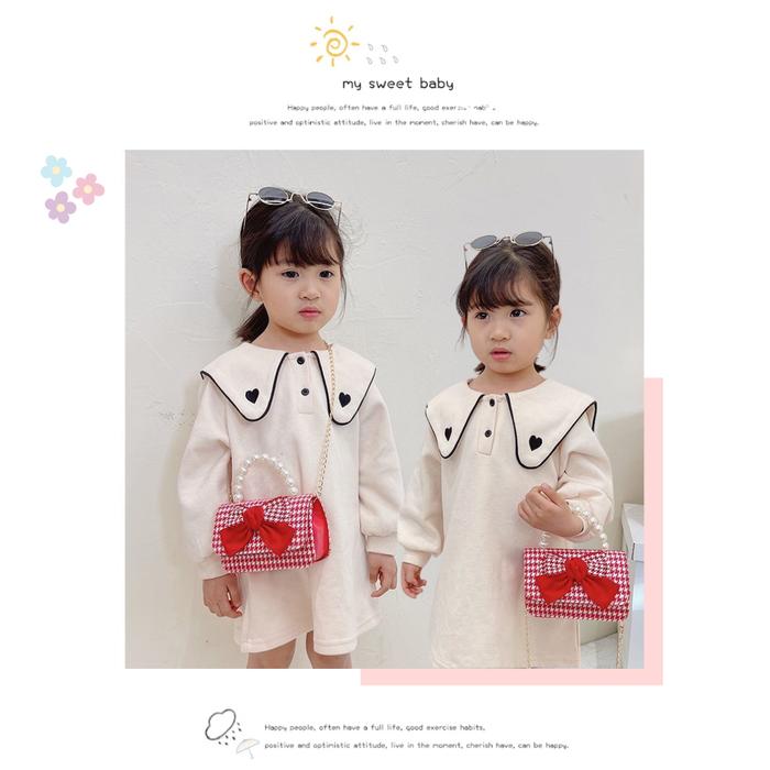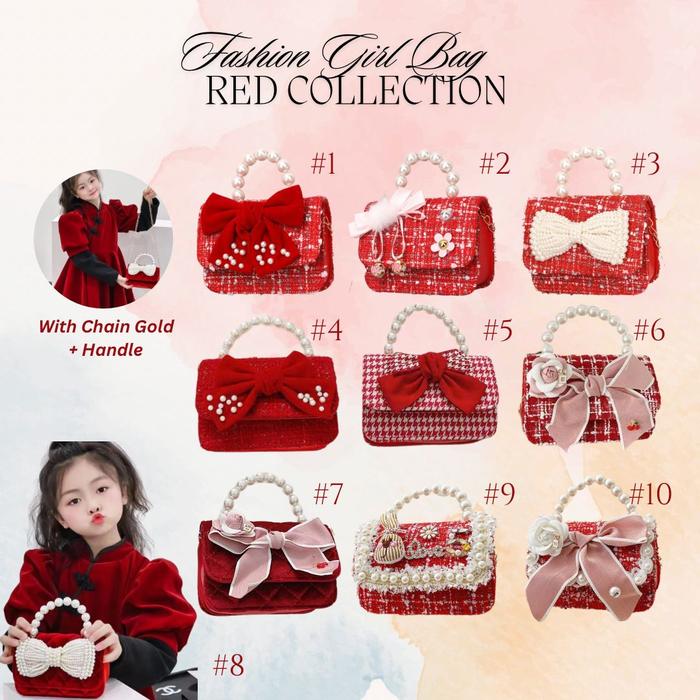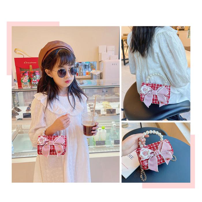 Murah [Brandedbaby] Tas Fashion Anak Perempuan Trendy Kekinian Ala Korea Tweed Premium - Red-1 Elegan