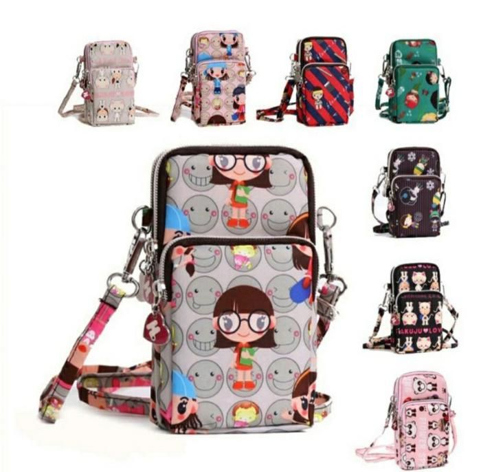 Terlaris Tas HP Anak Perempuan Import 131 Terbaru Tas Selempang HP Anak Wanita - Smile Girl Grey Elegan