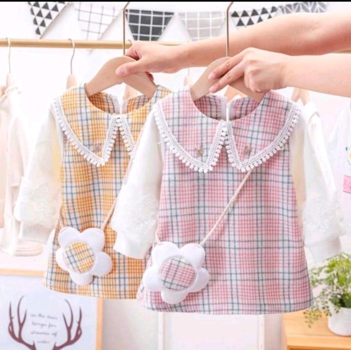 Terlaris Manis/DRES IMPORT PREMIUM ANAK PEREMPUAN FREE TAS/DRES IMPORT ANAK KOREA Dress - PINK XL=2-3 tahun Elegan