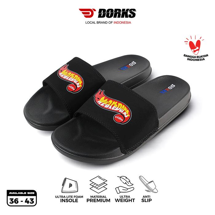 Promo Sandal Slide Dorks Fire - Sandal Slop Casual Pria Wanita Sendal Selop Karet Slipper Anti Licin - 36 Keren