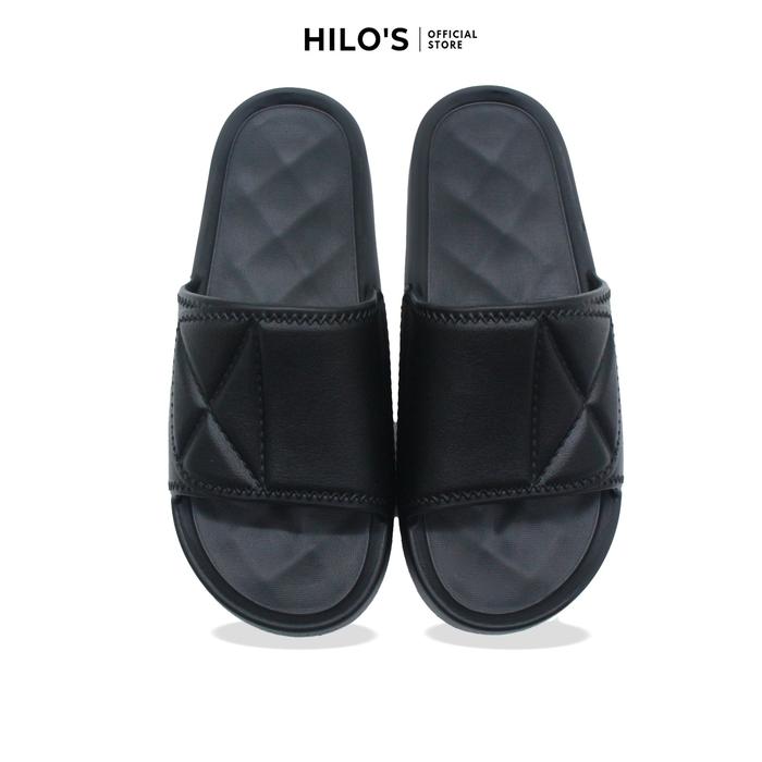 Terlaris Hilo's - Sandal Selop Pria Polos Elegan SImpel Terlaris Sendal Karet Shoes Hitam - HITAM 35/36 Keren