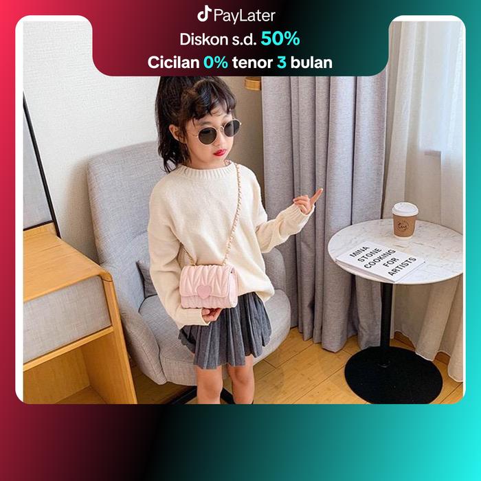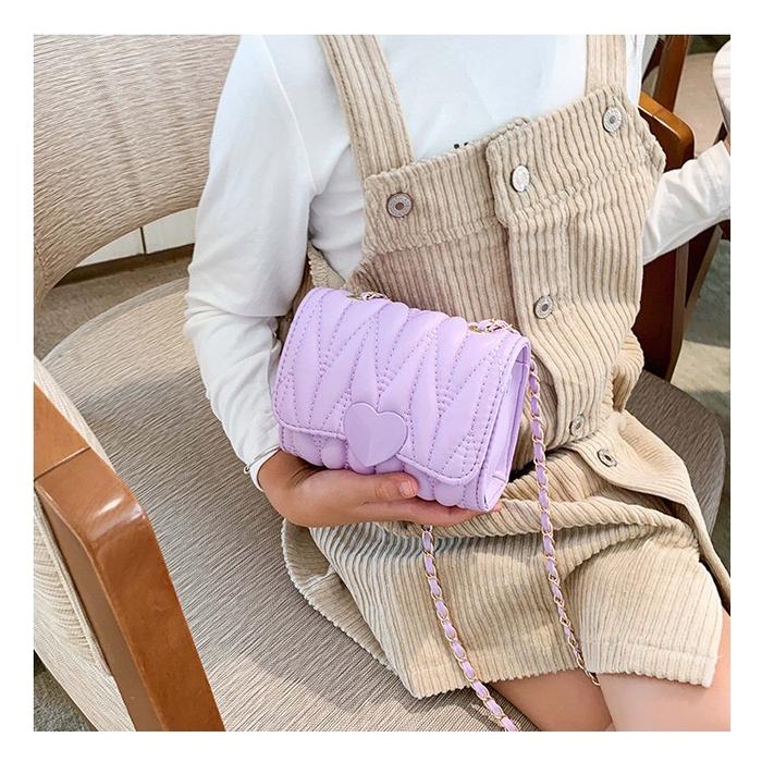 Murah Tas anak lucu kecil kulit PU qualitas bagus tas love - Purple PU Elegan