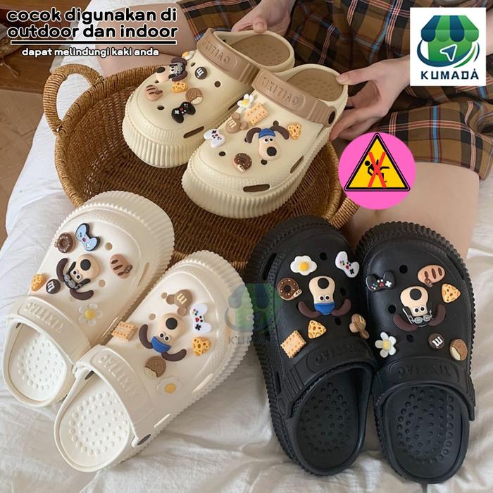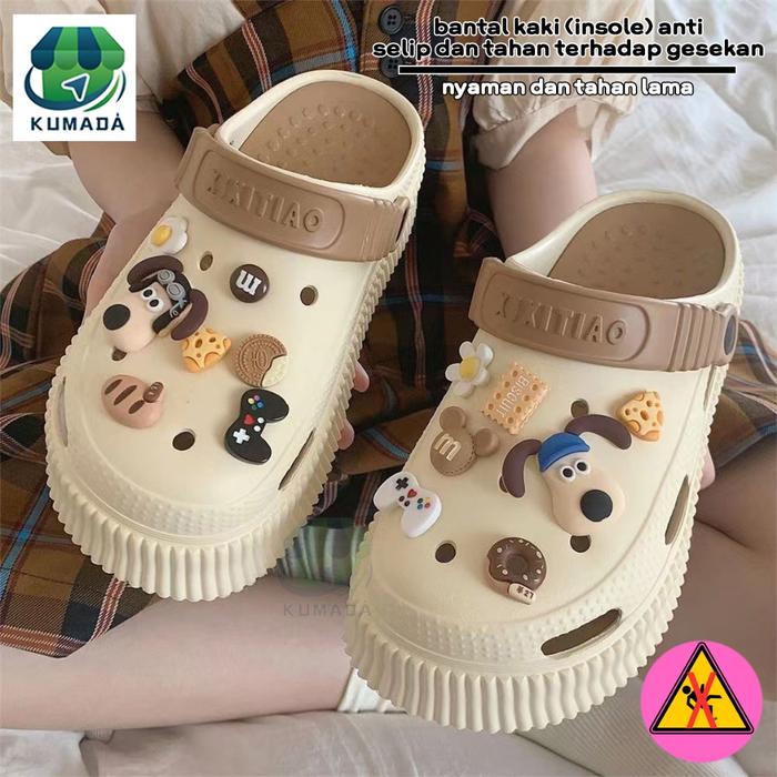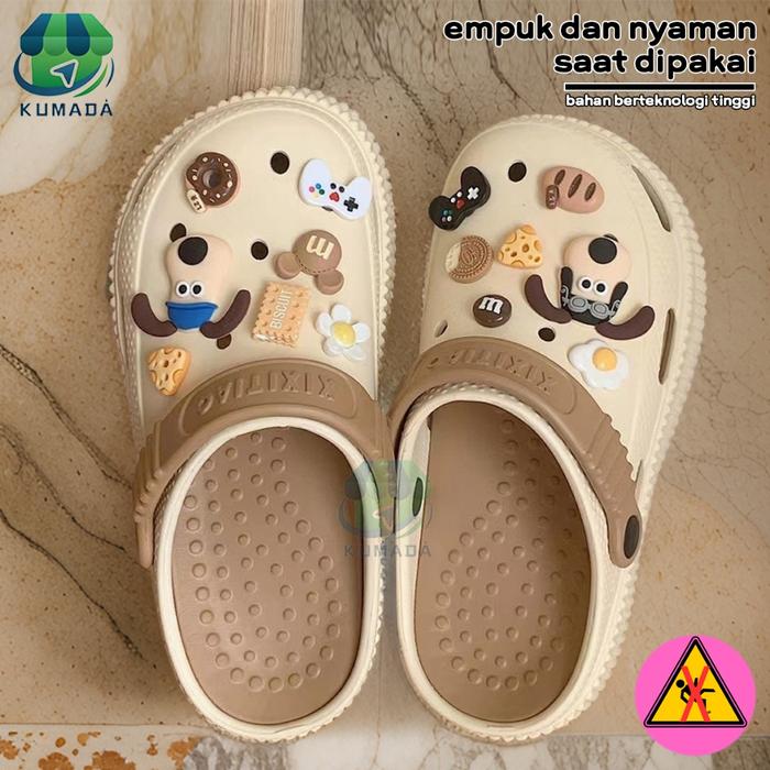 Terlaris Kumada Sandal Wanita Sendal Slop Sendal Karet Empuk Anti Slip Cewek - Putih+AKS10 36/37 Elegan