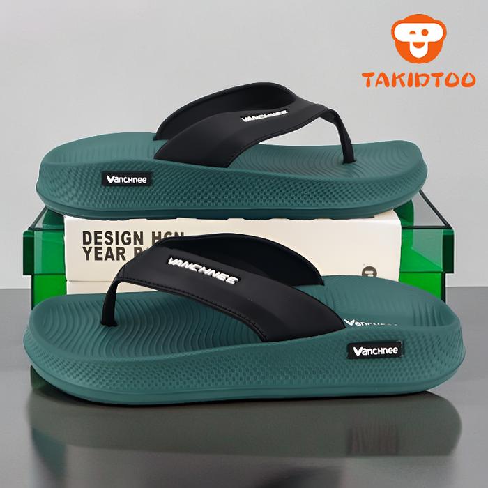Terlaris Takidtoo Sandals Flip Flops Jepit Sendal Pria Fashion Hitam Hijau Putih - Hitam 30-31 Keren