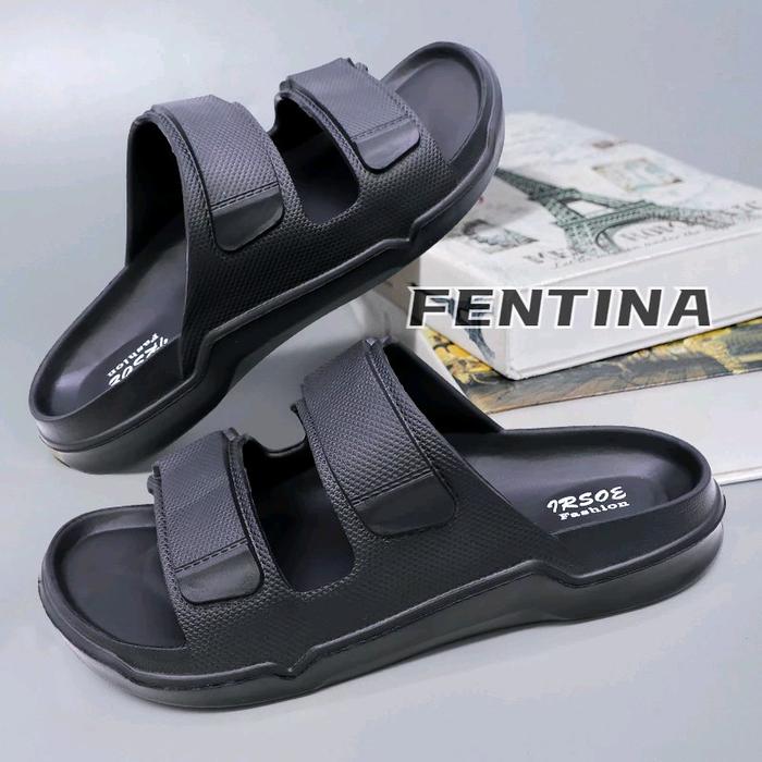 Terlaris sandal selop karet pria slide hitam irsoe Sendal 392 - 40/41 Elegan