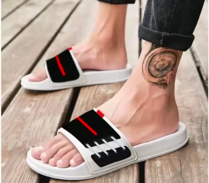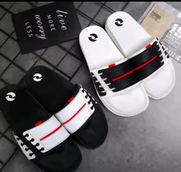 Promo Sendal Slip On Motif Tali Pria & Wanita Terbaru - Distro Karet - hitam 38 Elegan