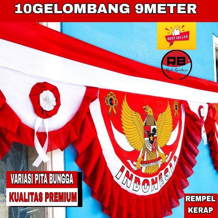 BENDERA MERAH PUTIH BACKGROUND GARUDA 10GLOMBANG 9METER KUALITAS PREMIUM