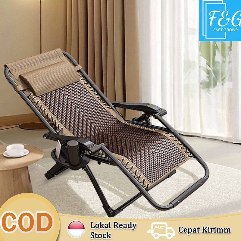 【BONUS SARUNG BANTAL】F&G Kursi Santai Rotan Lipat - Model Kekinian 2025, Anti Gores, Cocok untuk Kosan & Balkun Kecil Mu