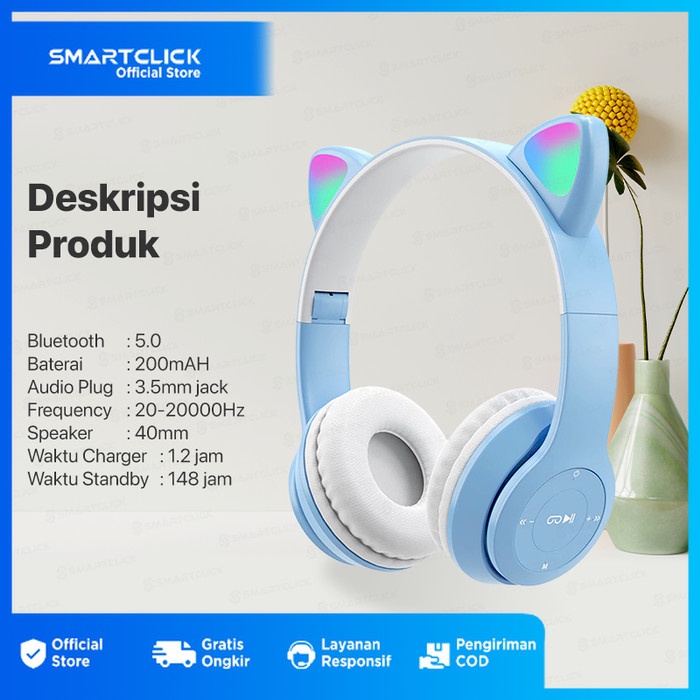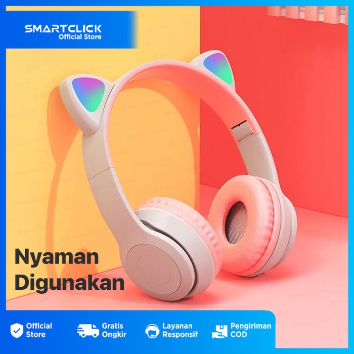 Headset Bluetooth Wireless LED Bass Telinga Kucing Stereo With Mic