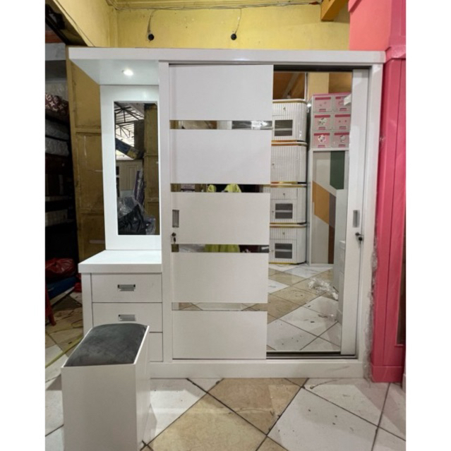 Lemari Pakaian Sliding Wintela+ meja Rias cat duco Anti Jamur