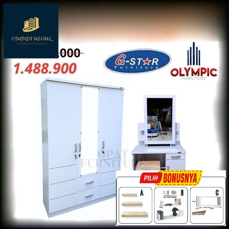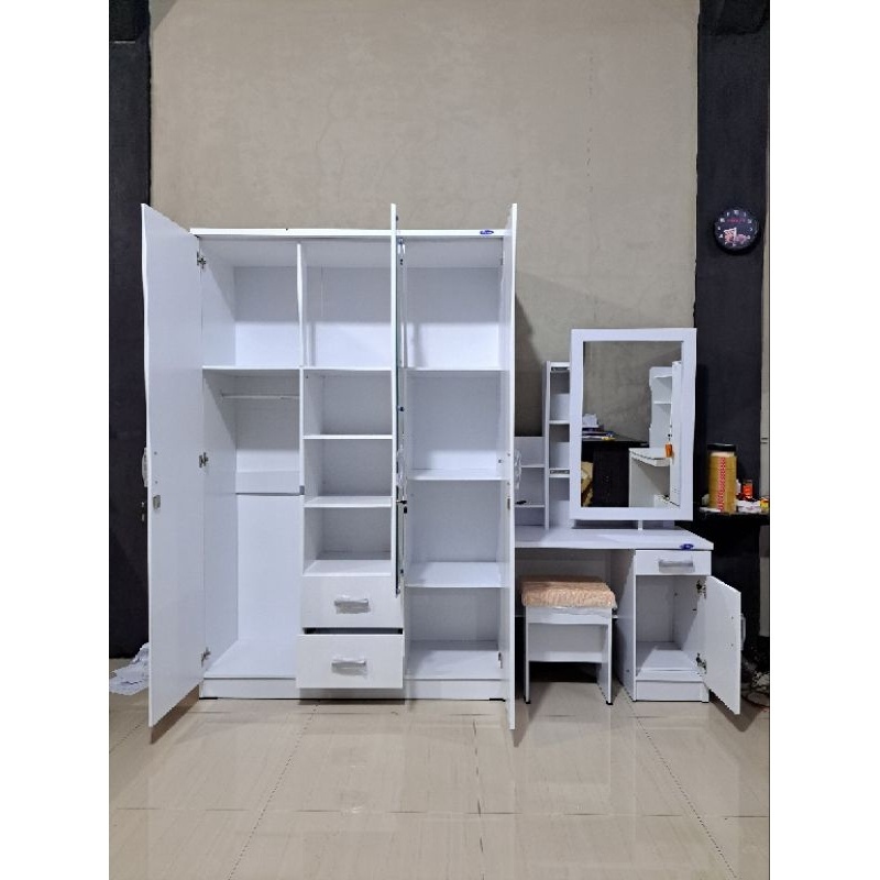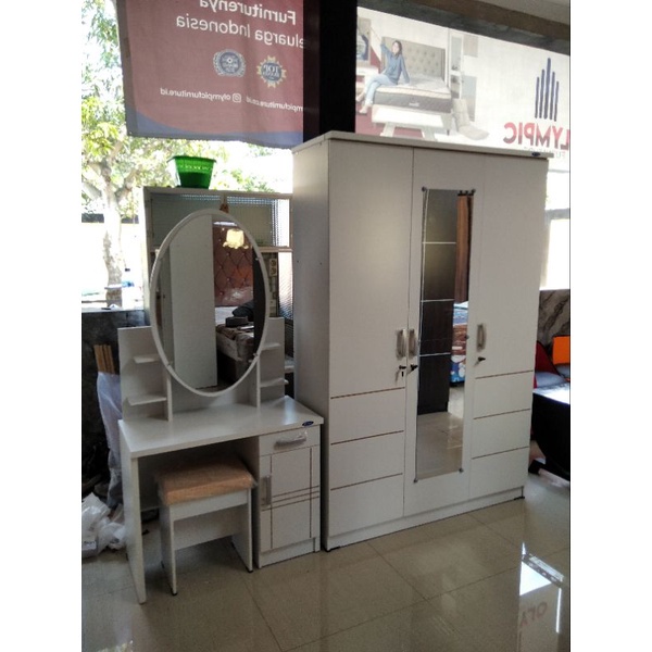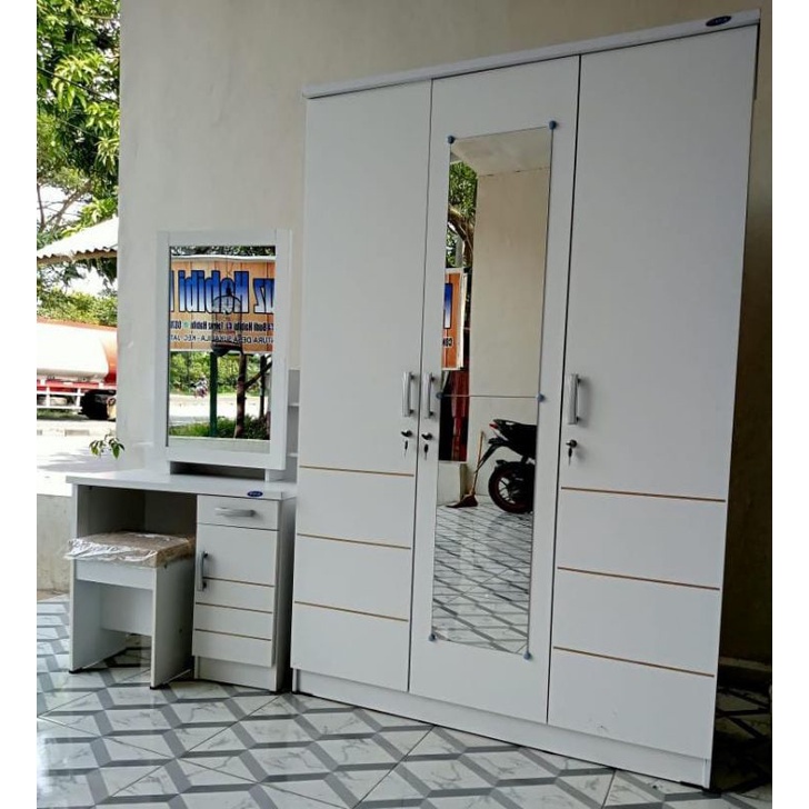 PROMO Set Lemari Pakaian 3 Pintu dan Meja Rias Kaca Sliding - Lemari dan Meja Rias Murah - Satu set