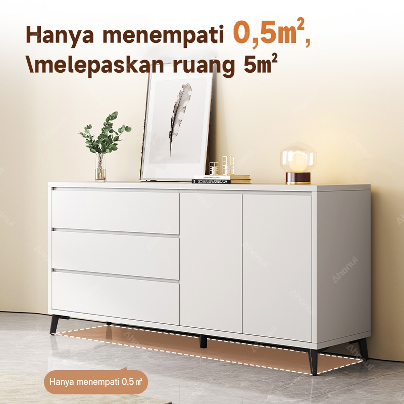 ⭐100cm&140cm&3 Tahun Garansi⭐Lemari Penyimpanan Bufet Model Krem Lemari Penyimpanan Lemari Samping Dinding Ruang Tamu