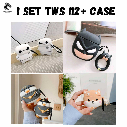 1 SET TWS + CASE Headset Nirkabel Universal i12 TWS INPODS Bluetooth Earphone 3D Kartun Karakter Lucu HIFI Earbud Stereo