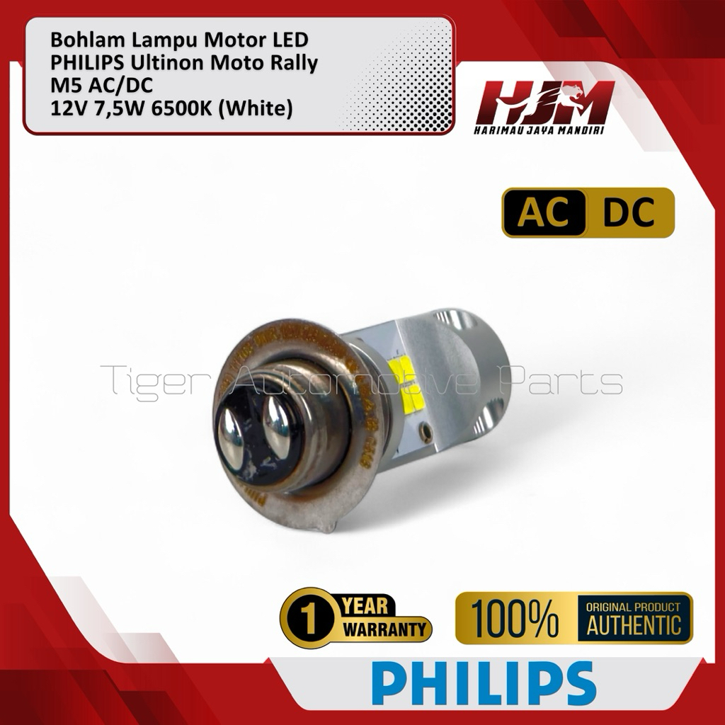 Bohlam Lampu LED Motor PHILIPS M5 T19 AC/DC 12V 7.5W Ultinon Moto Rally Kaki 1 Original