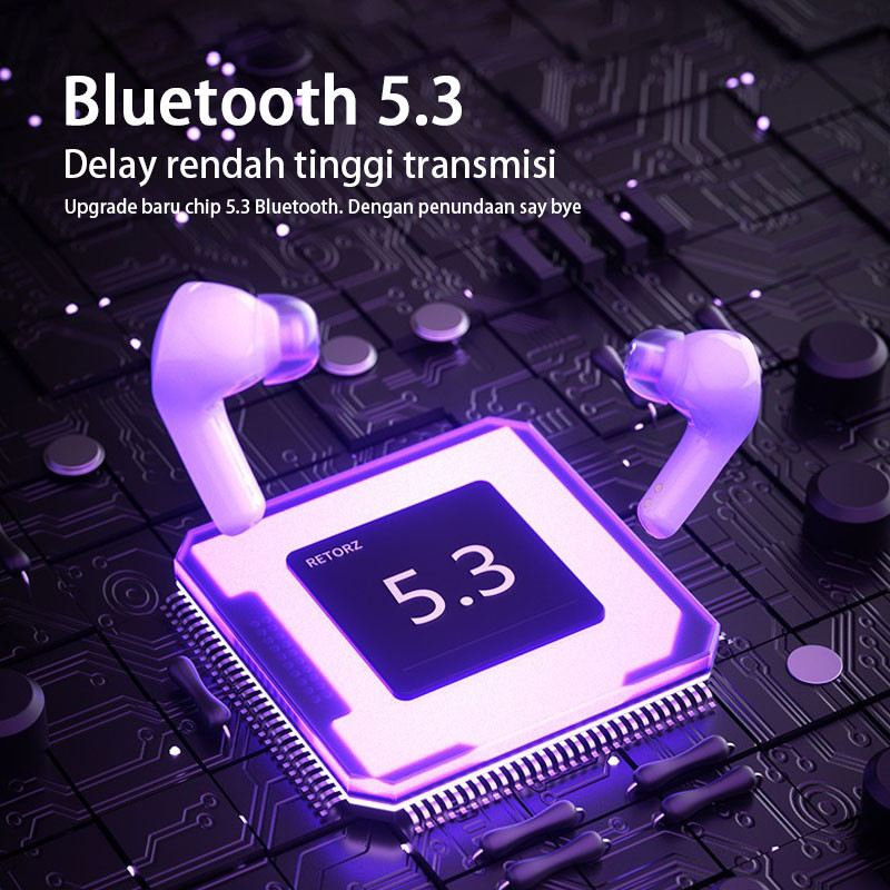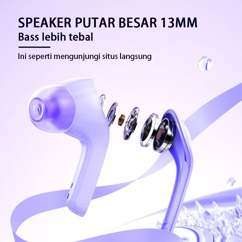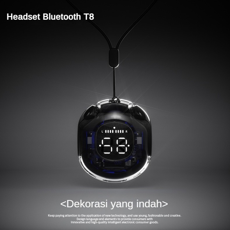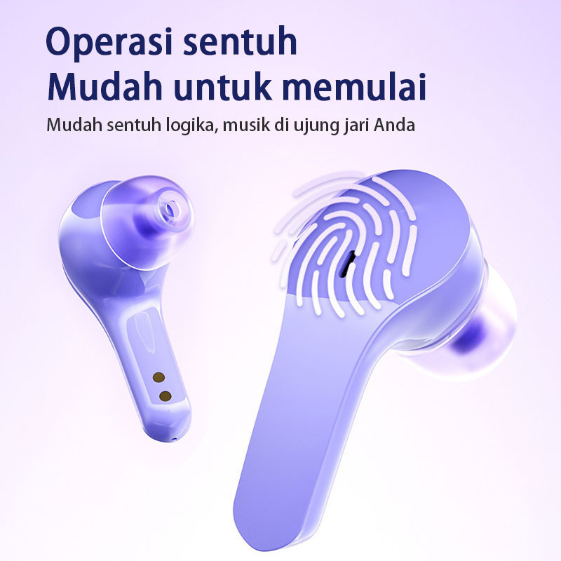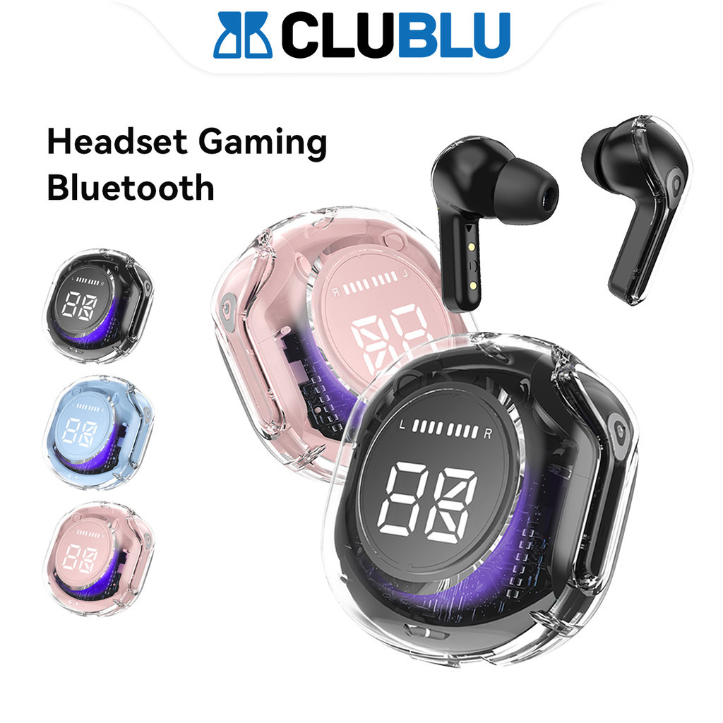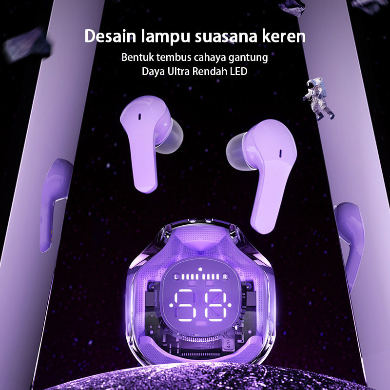 Headset Gaming Bluetooth TWS Stereo Mic Wireless LED Display Touch Control Lucu Transparent