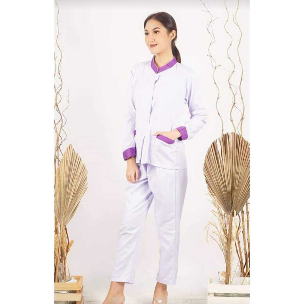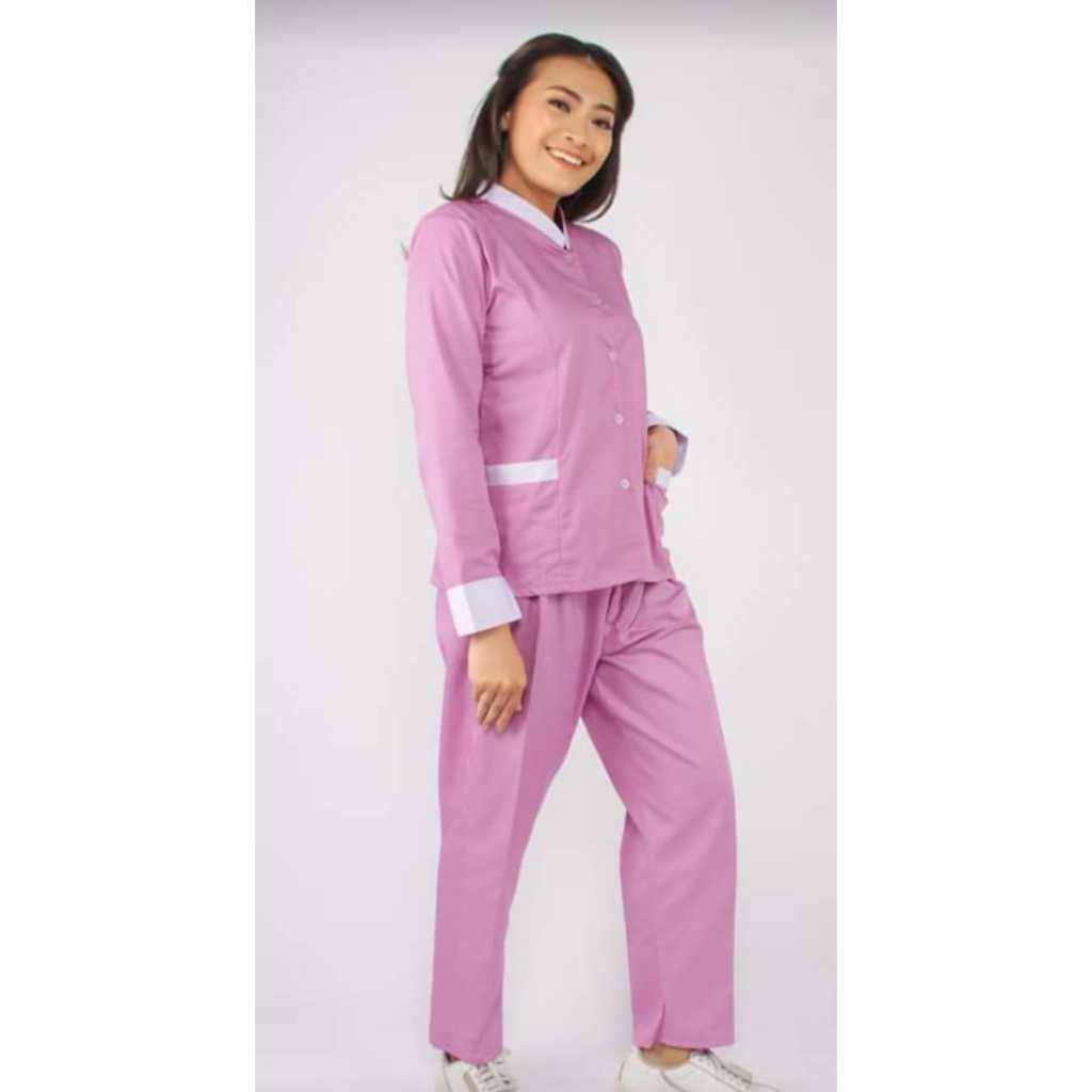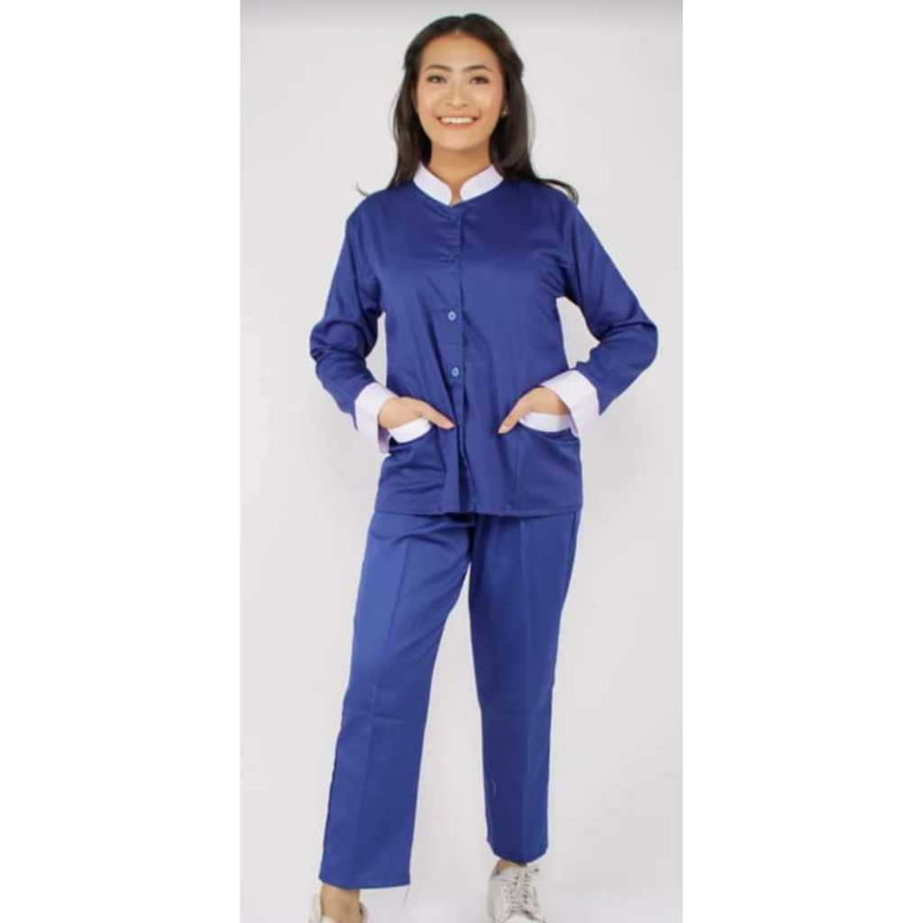 Baju Perawat Wanita List Warna Lengan Kancing Depan Seragam Oka Jaga Medis Lengan Panjang Size S M L