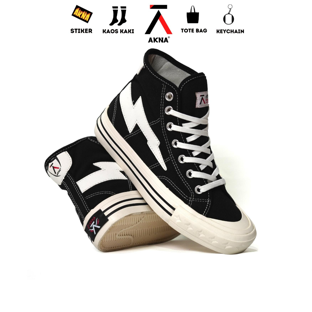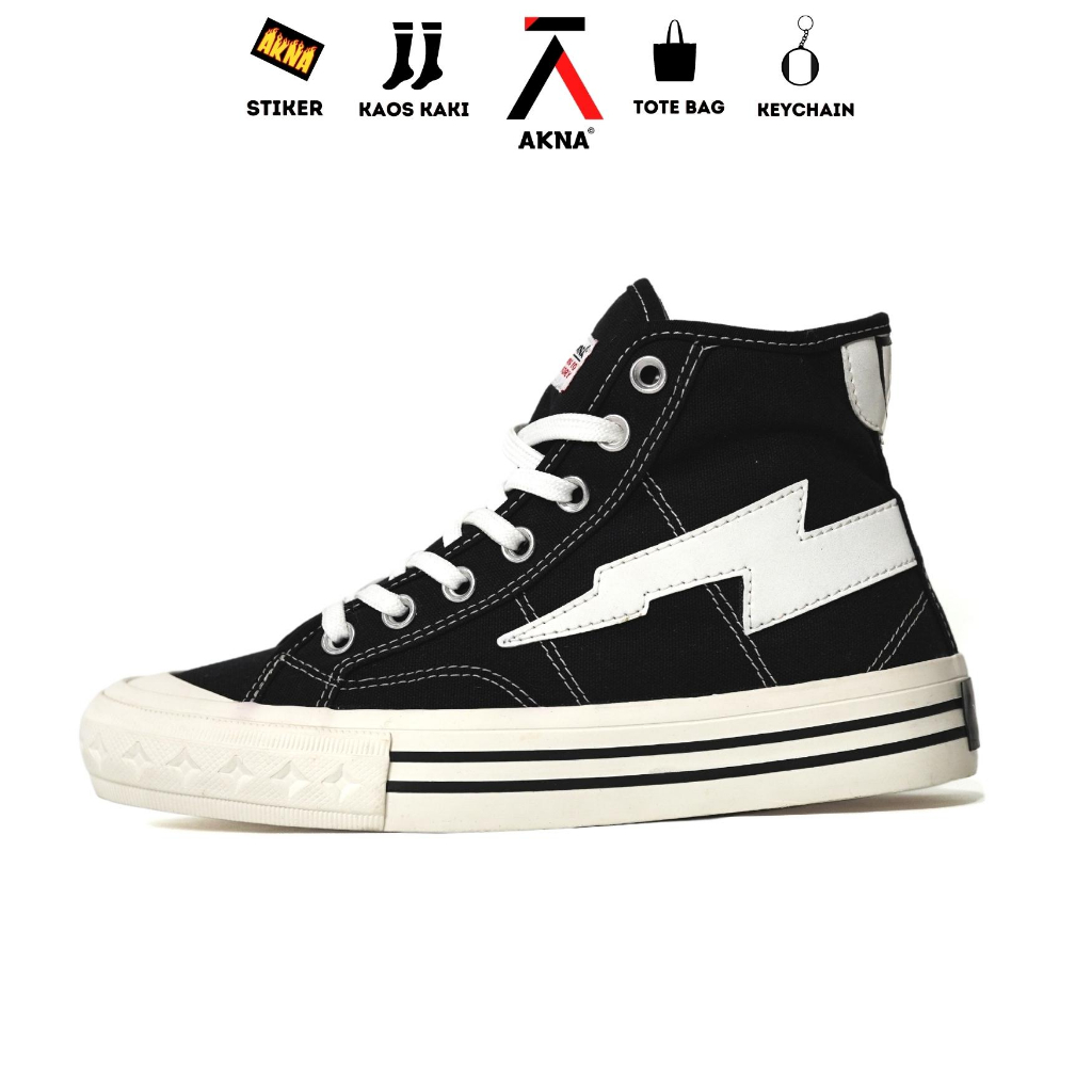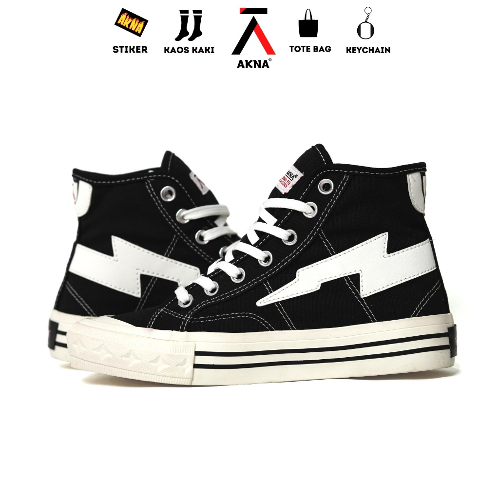 AKNA - Sepatu Aksara High Black White Pria Wanita