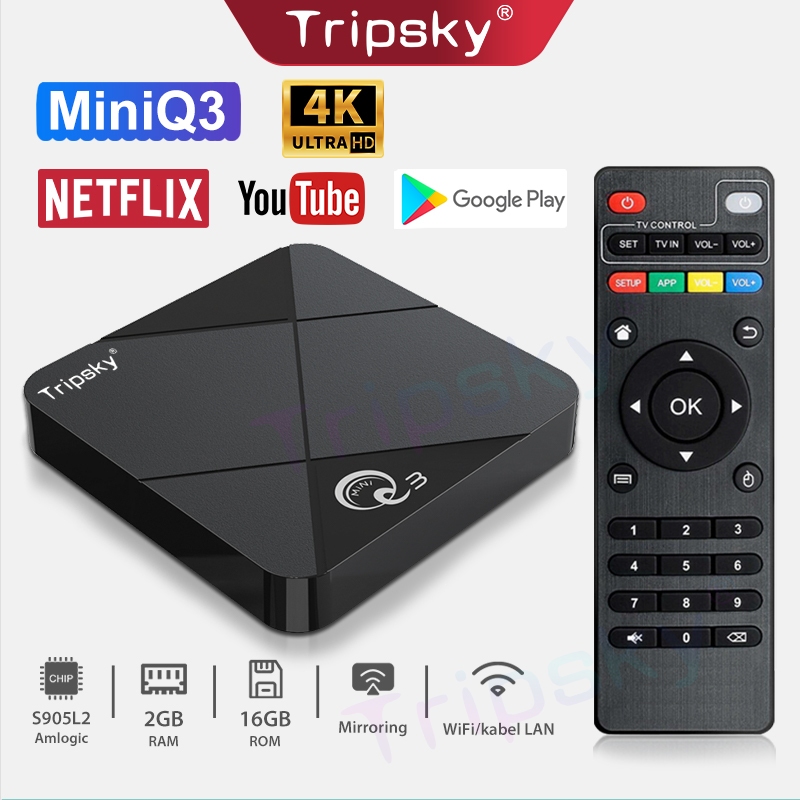 Tripsky MiniQ3 Android Tv Box 2gb Ram 16gb Rom Tv Box Android 9 2.4G Wifi Smart Tv Box Unlock Tv Box