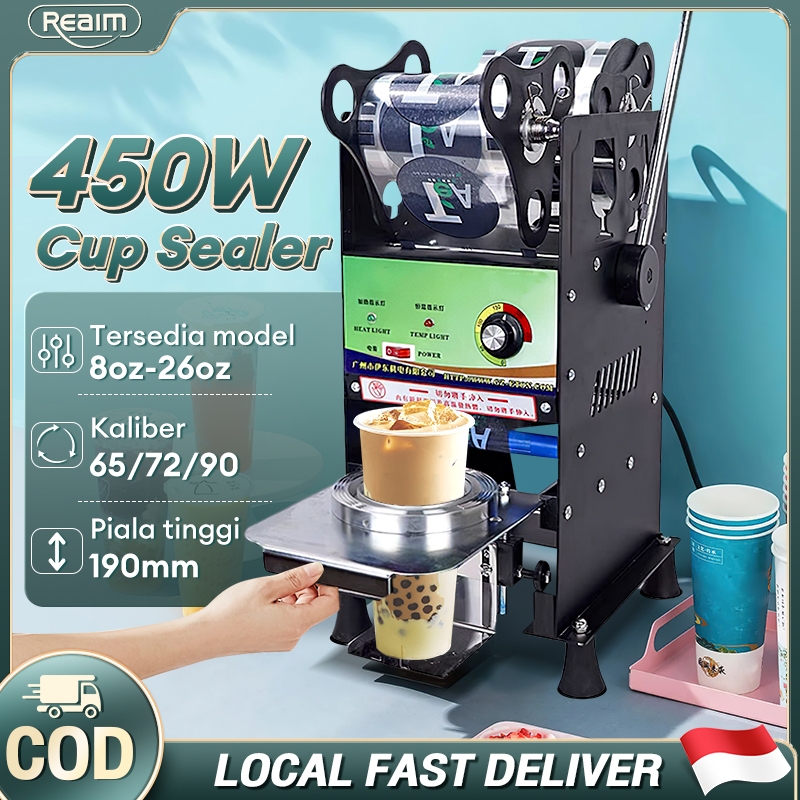 REAIM Mesin Cup Sealer 8 - 26Oz Mesin Press Gelas Plastik [Semua Ukuran Cup] Alat penutup minuman