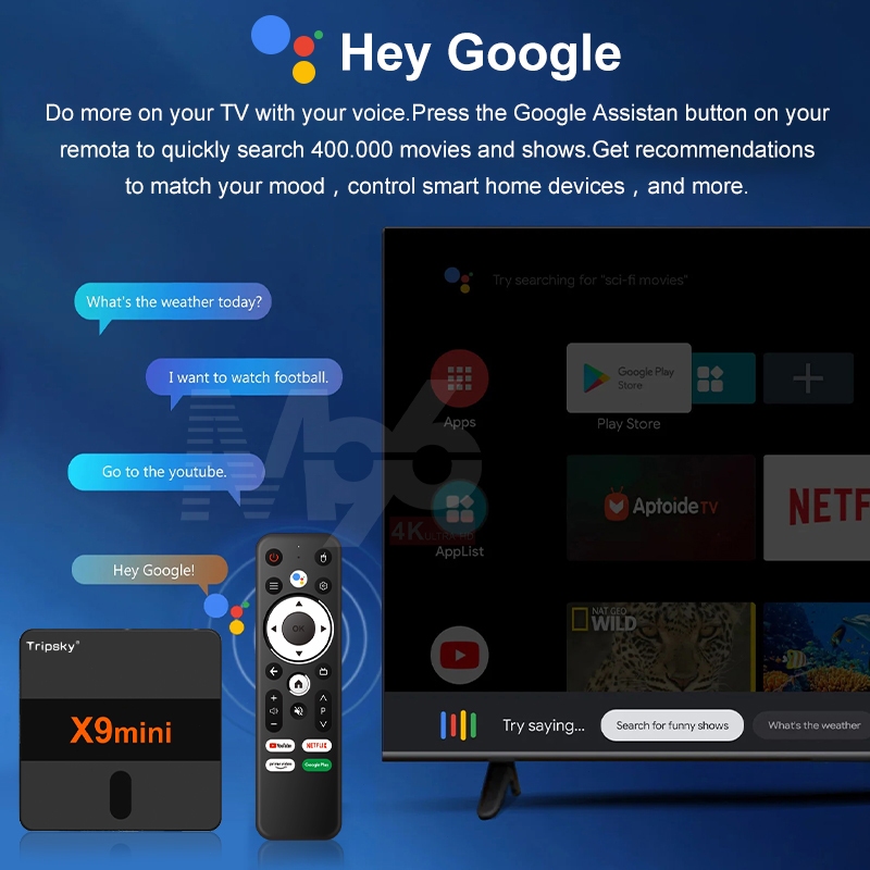Tripsky X9mini Android Tv Box 4K Full HD Smart Tv Box RAM 2GB ROM 16GB Android 9.0 Bluetooth Tv Box
