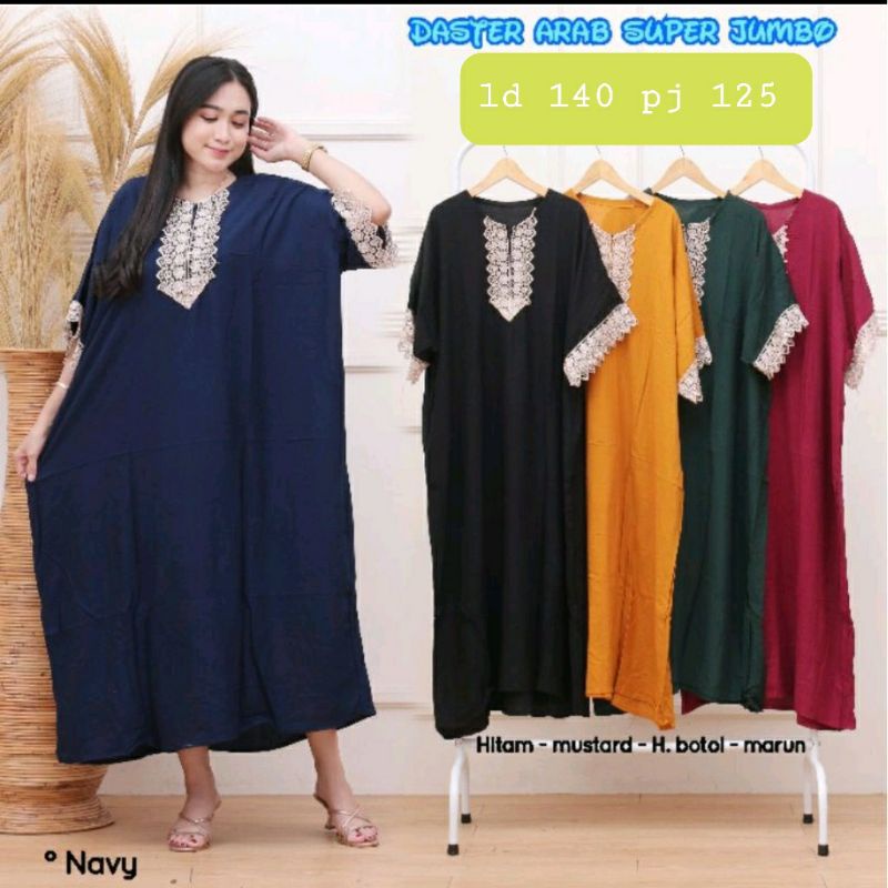 Daster Arab Renda Jumbo LD 140 | Daster Super Jumbo Muat BB 100 kg | Rayon Tebal Busui