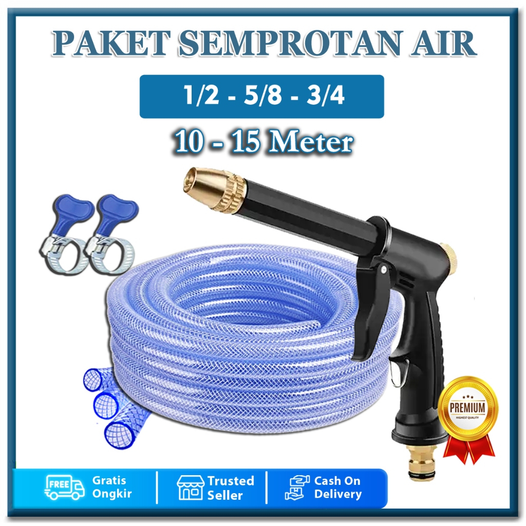 SEPAKET KEPALA JET SPRAY SEMPROTAN SELANG AIR SERAT BENANG 10 15 METER 1 ROL ALAT SEMPROTAN TAMAN CUCI MOTOR
