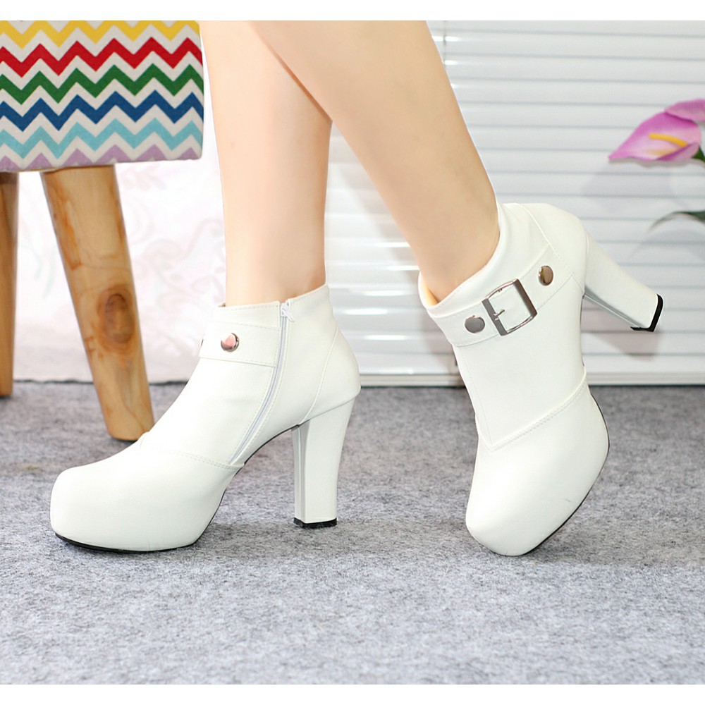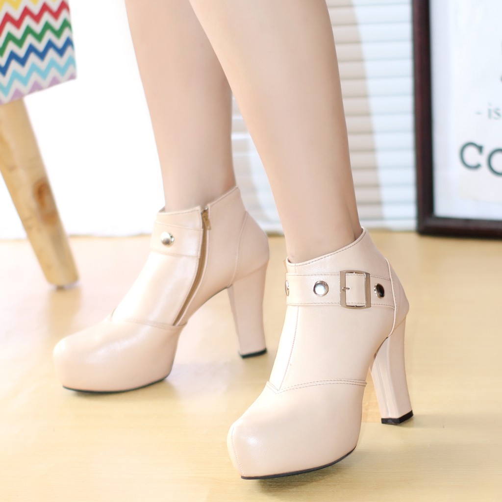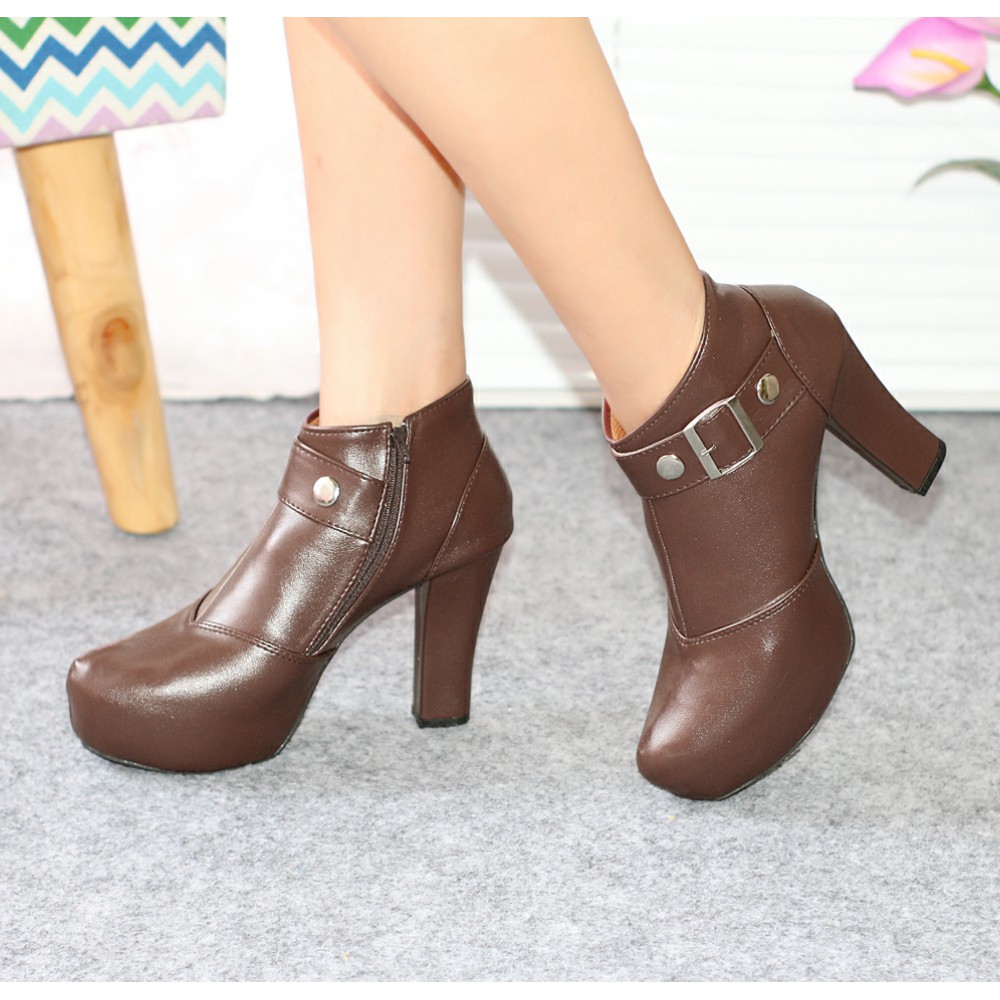 Sepatu Wanita Boots Heels Kulit Sintetis Elegan
