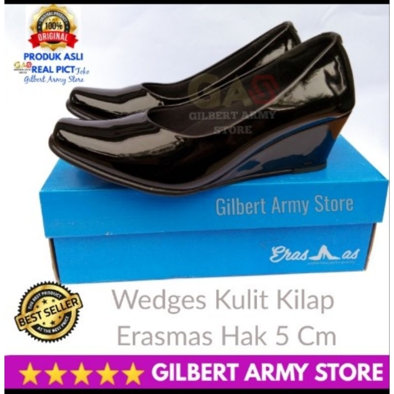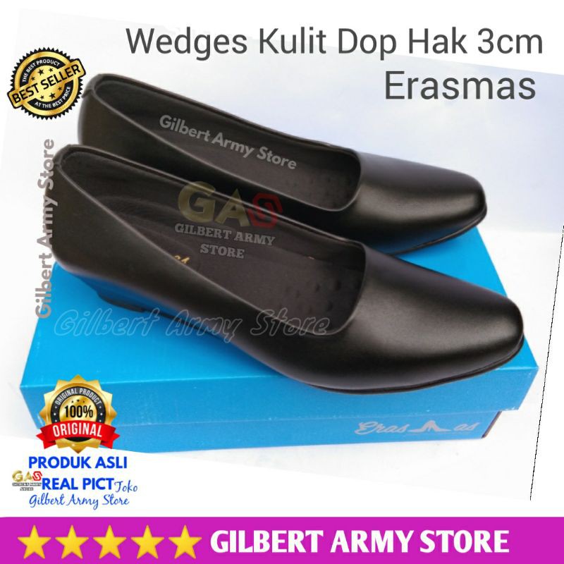 Sepatu pdh persit Asli ORI ERASMAS wedges hak 3cm security,pns guru dinas kantor Murah Gilbert Army Store