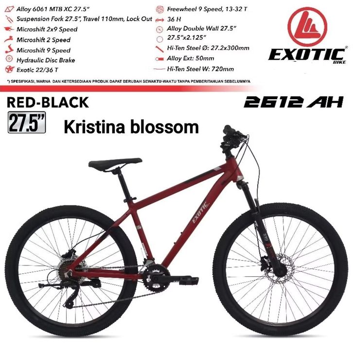 Sepeda MTB Gunung 27.5 Inch Exotic 2612 AM Pacific Invert Spazio Exotic 2612 AH Hydraulic 2. Aloy