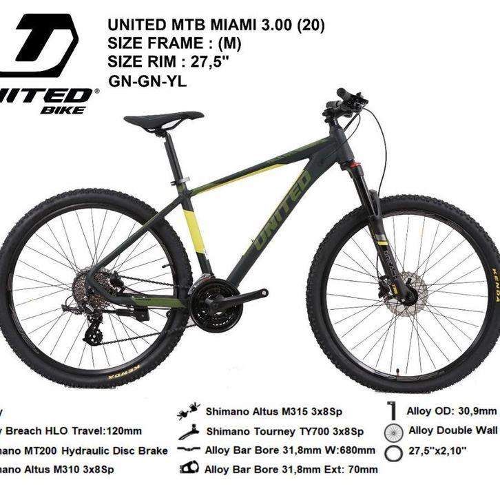 ...Sepeda Gunung UNITED MIAMI 3. 27,5 inch SHIMANO Hydraulic Disc brake MTB united Miami 3. Size