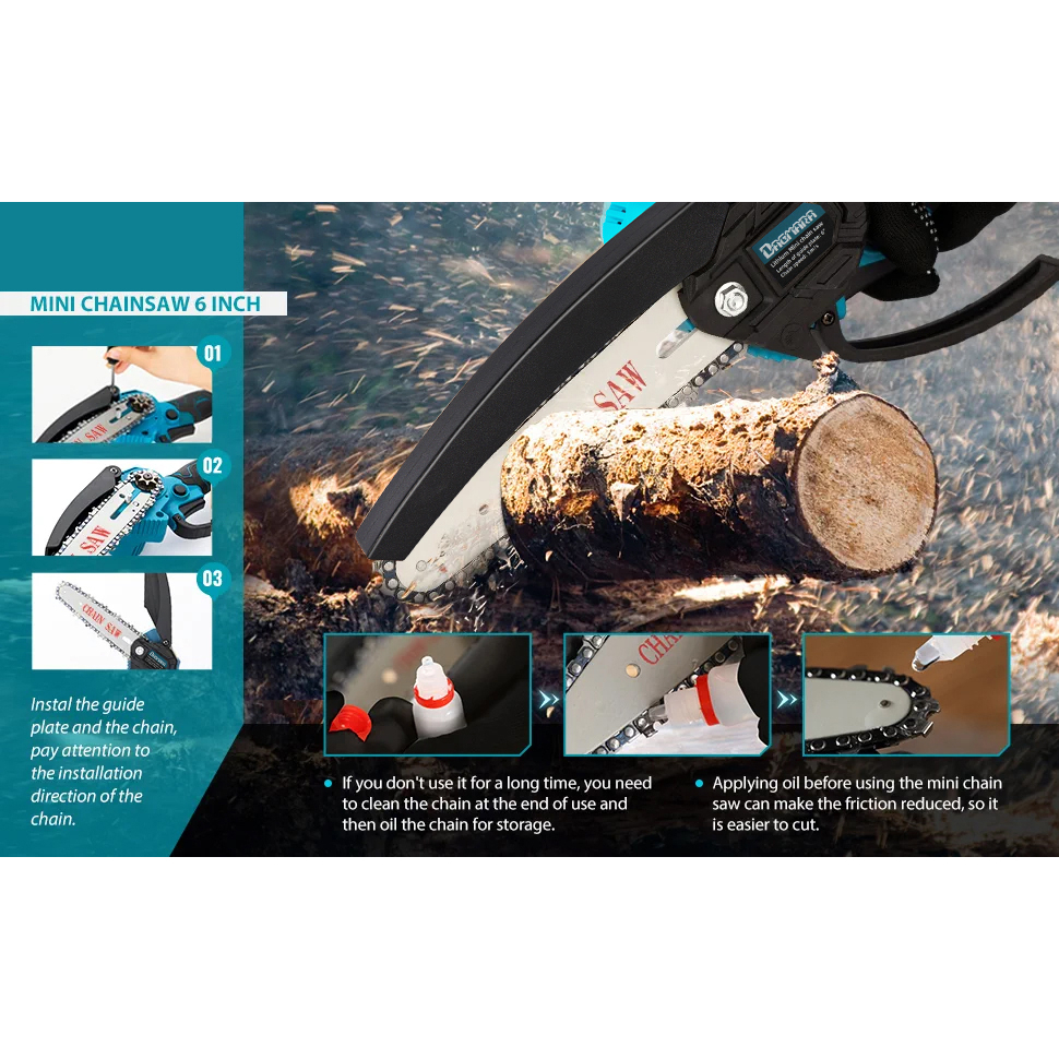 Dagmara Mini Chainsaw,6 Inch Portable Electric Chainsaw Cordless,2023 Upgrade Small Handheld Chain saw for Tree Branches,Courtyard, Household and Garden,By 1 PCS 21V 1300mAh Batteries