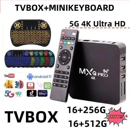 MXQ Pro 4K 2.4G - 16GB + 512GB/256GB Android TV Box, Set Top Box TV Digital Ultra HD, Cocok untuk Semua Jenis TV