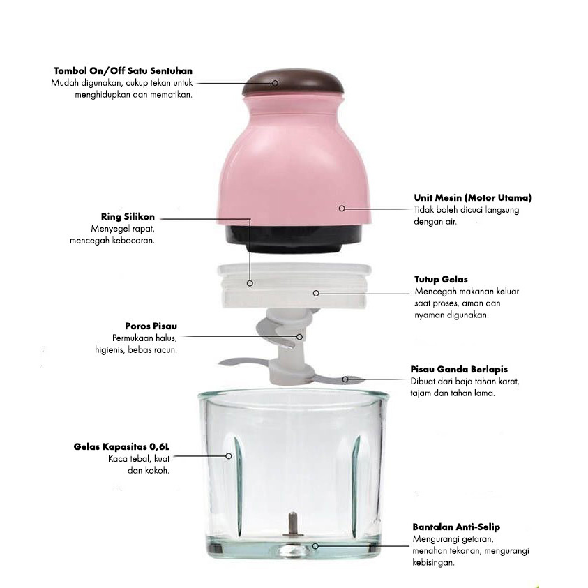 Smarteck Capsule Blender SBC01 Chopper Multifunctional Baby Infant Food Processor Cutter Quatre Portable Mini Electric 600ml Serbaguna Penghalus Daging dan Bumbu