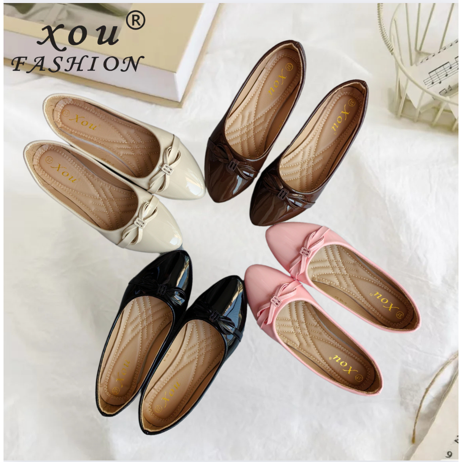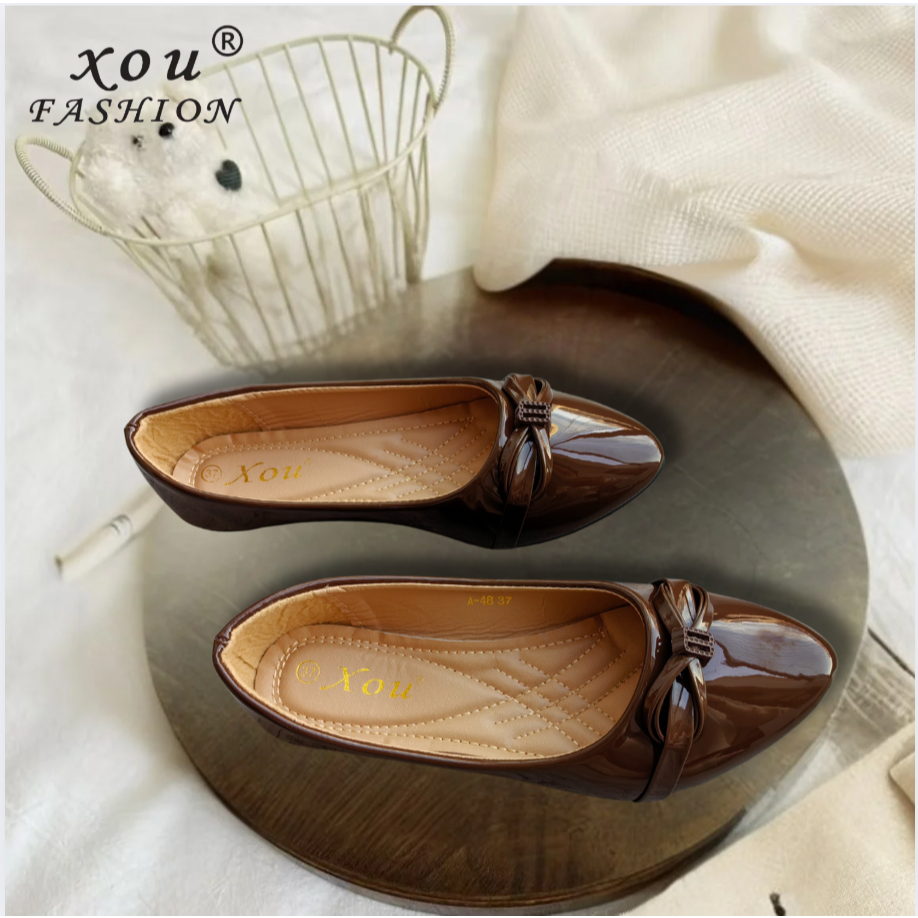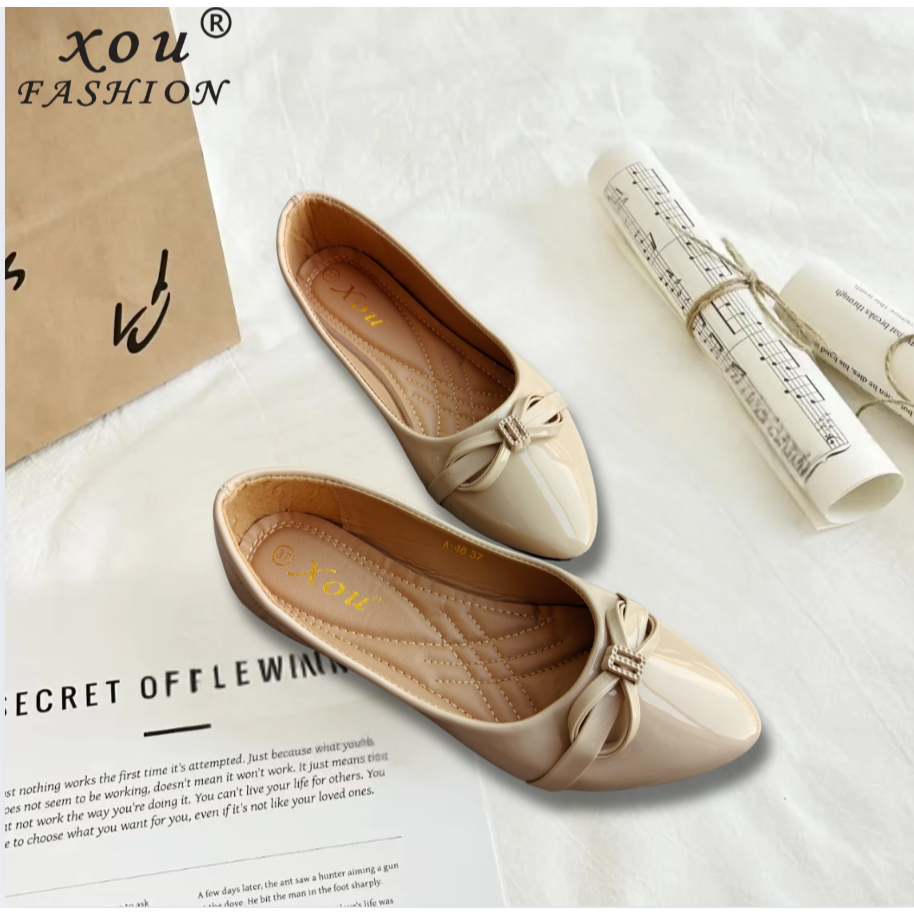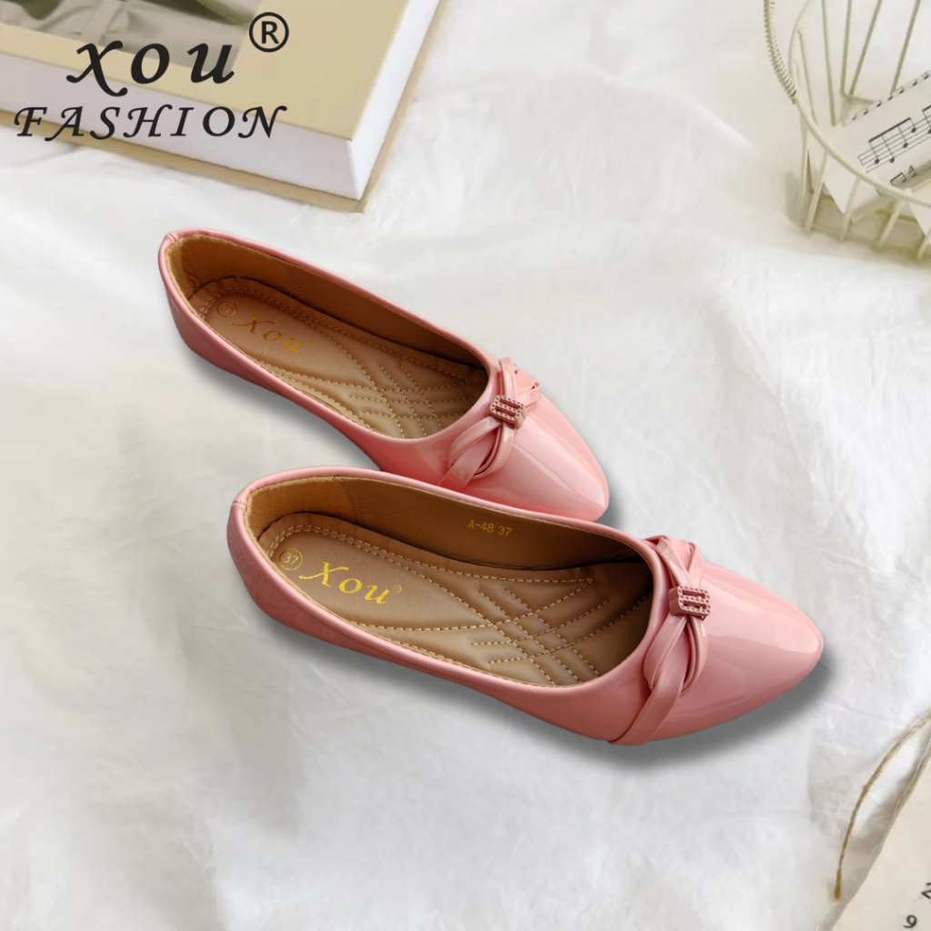 []XOU Fashion A-48 Shoes Sepatu datar wanita Sepatu pantofel Tren Mode flatshoes wanita elegan