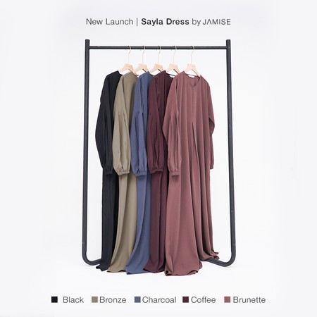Jamise Sayla Dress Abaya Simple Lengan Puff Karet