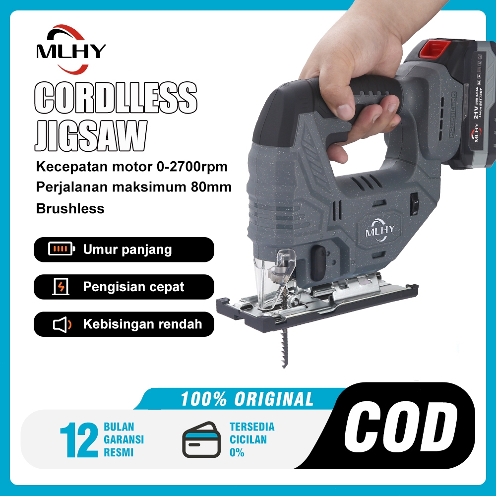 MLHY Mesin Gergaji Jigsaw Baterai Kekuatan Tinggi 1800W Motor Brushless 0-2700RPM 80mm Pemotongan Presisi Tinggi untuk Kayu & Logam