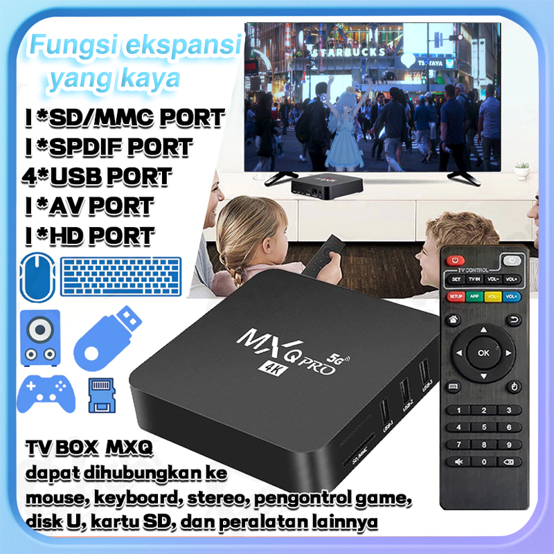 【𝒁𝑶𝑹𝑰𝑬𝑺】MXQ PRO Android TV Box 4K HD Smart Set Top Box 4G+32G Bluetooth digital Stb TV BOX Smart TV 4K Ultra HD Android TV BOX MXQ PRO 4K 5G Android TV Box full aplikasi tv box android terbaru