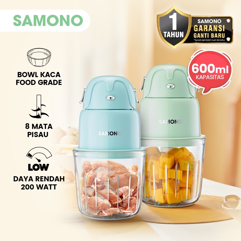 SAMONO Food Chopper 600ml MPASI Food Grade Mesin Penghalus Daging Serbaguna MFC600 Garansi 1 Tahun