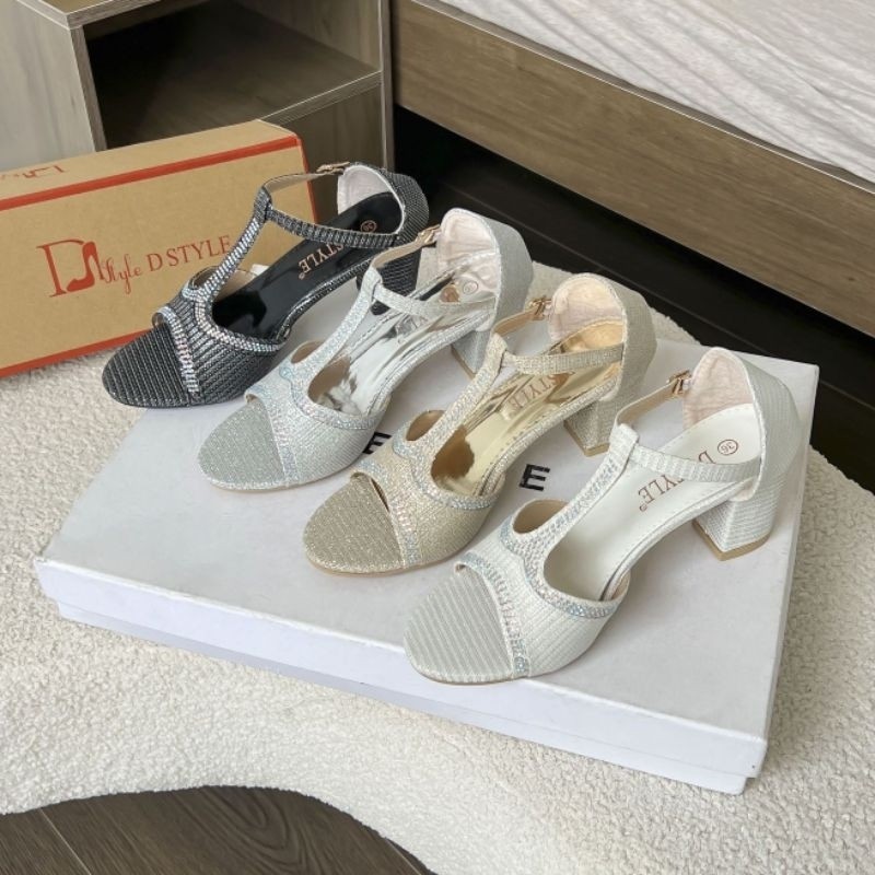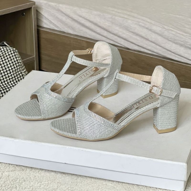 Sepatu Heel Wanita Gliter Chunky Korea Nyaman