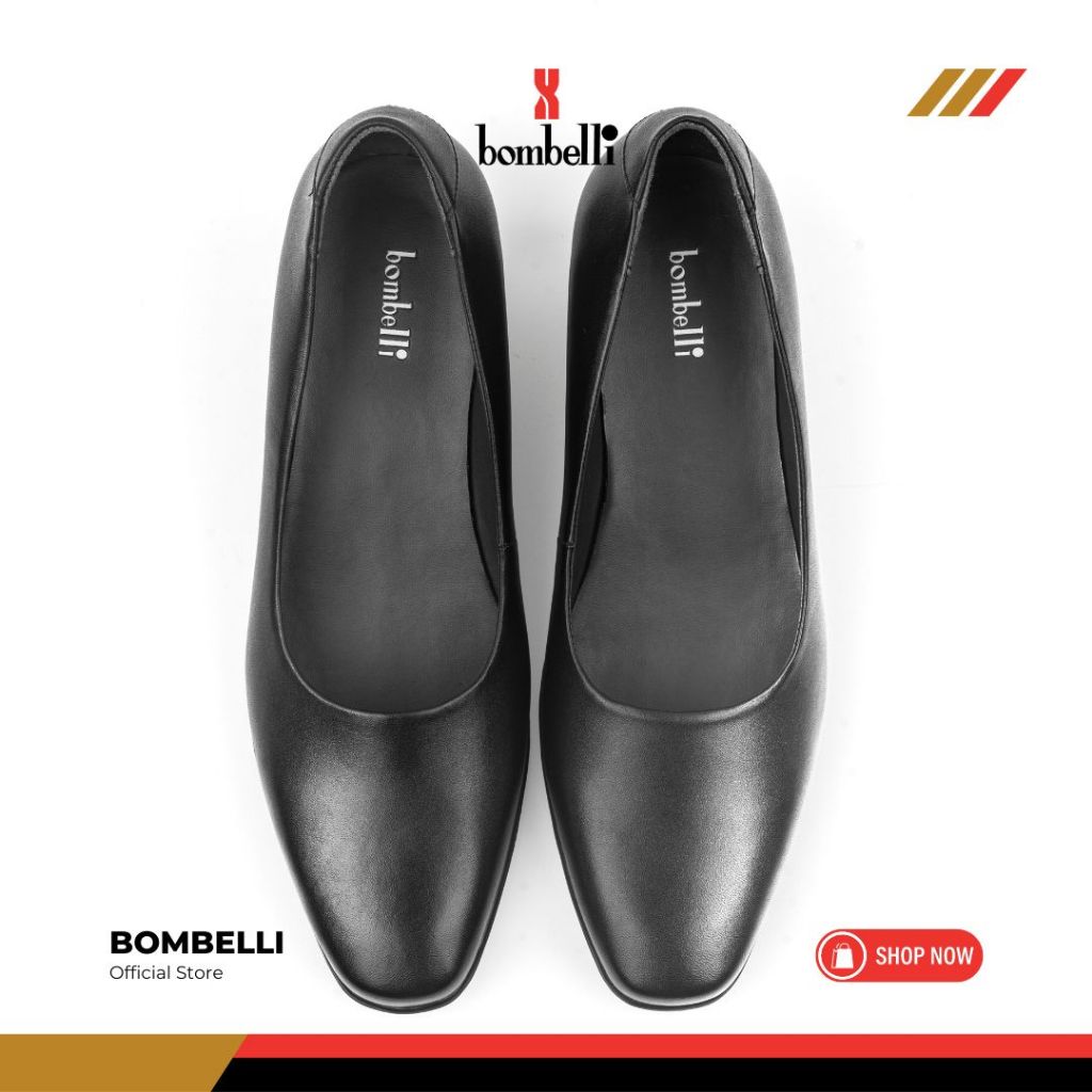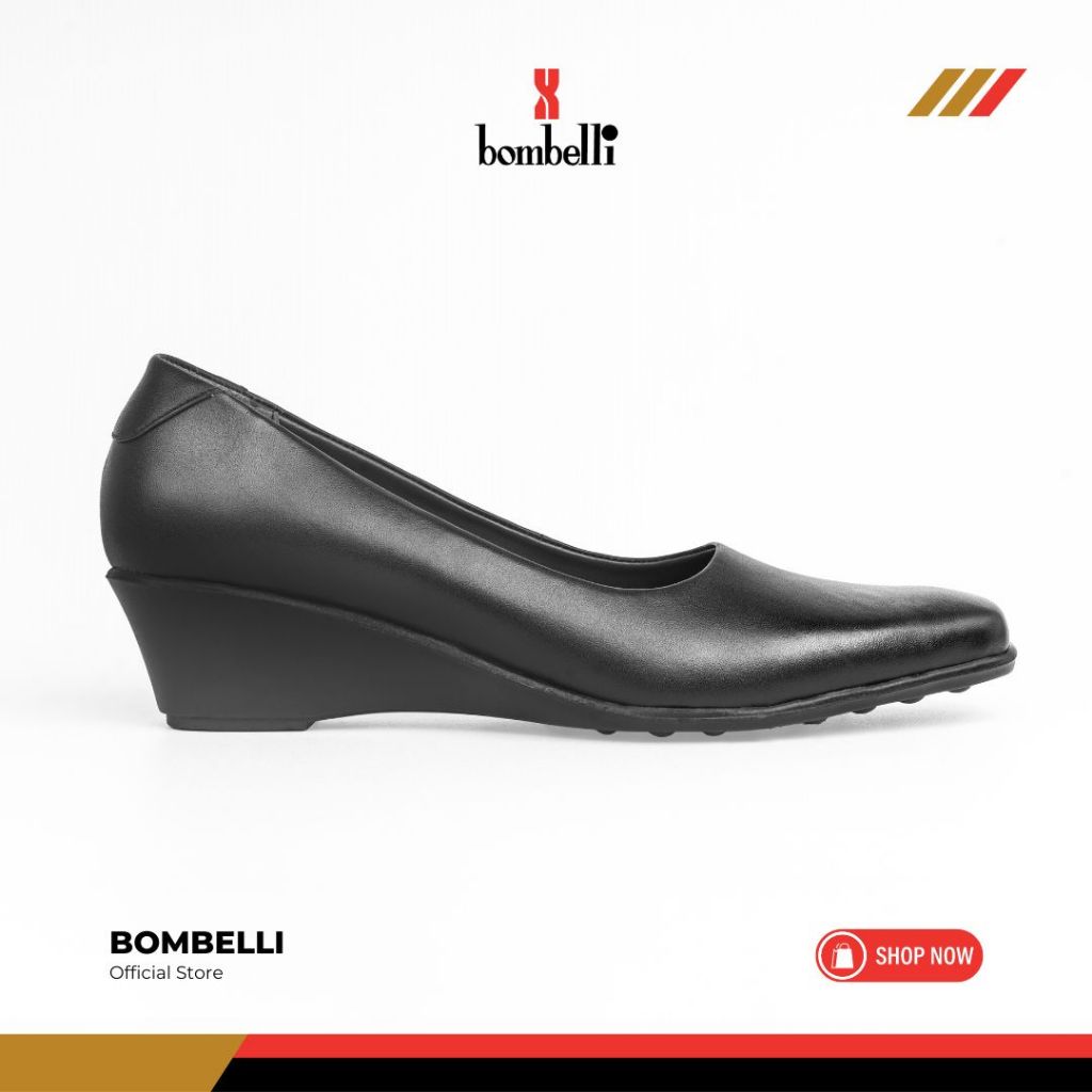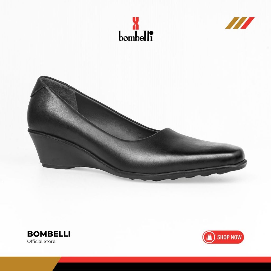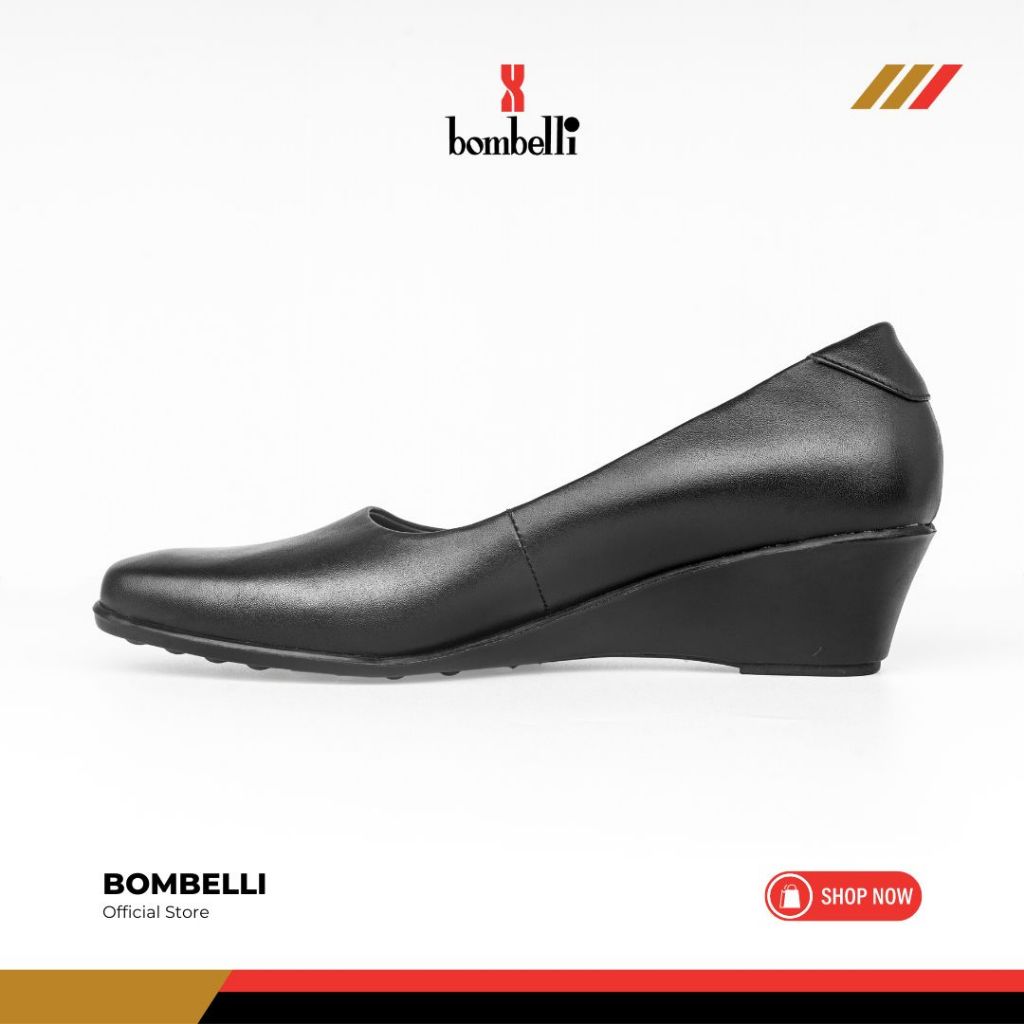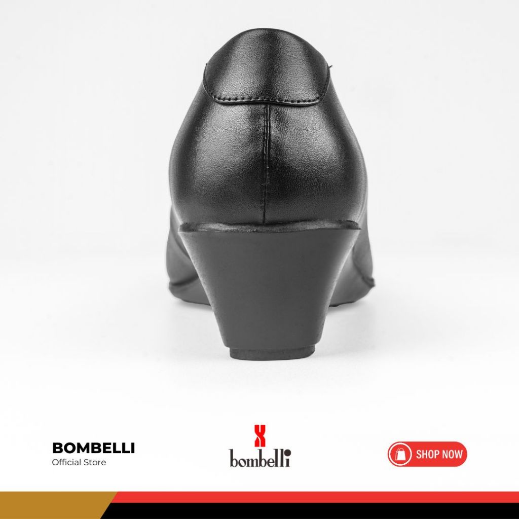Bombelli - Sepatu Formal Casual Hitam Slip On Wedges Kulit Wanita - Veta 02 Black