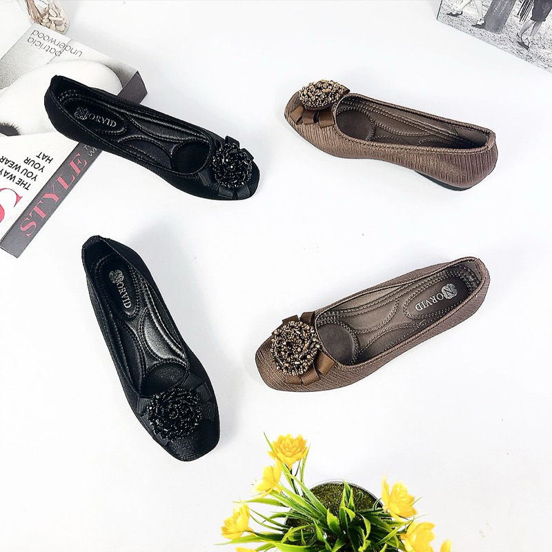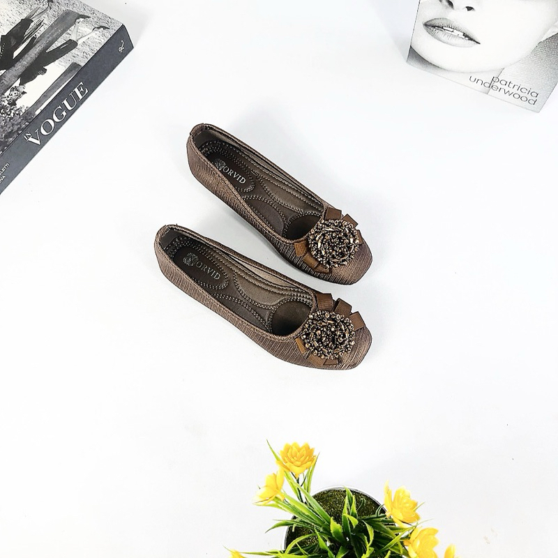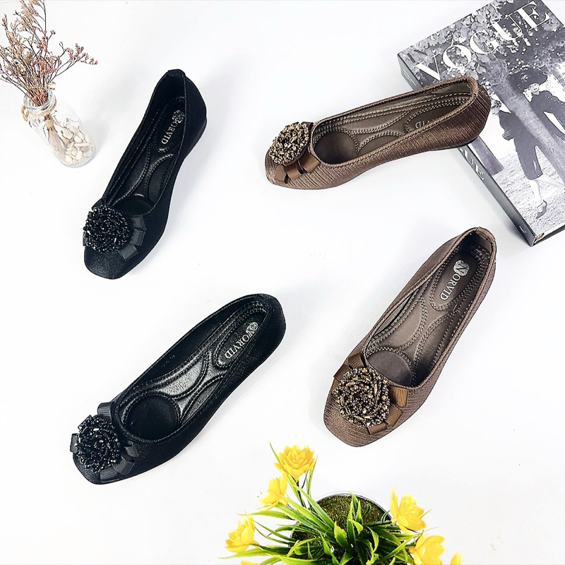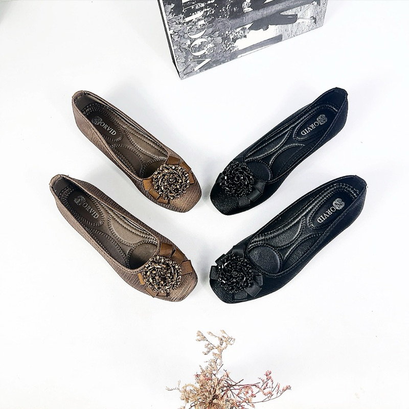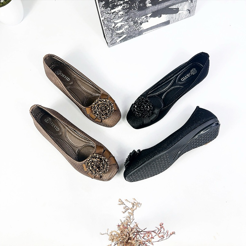 Sepatu Flat Wanita Slip On Norvid 872-HM16 Satin Hitam Cokelat