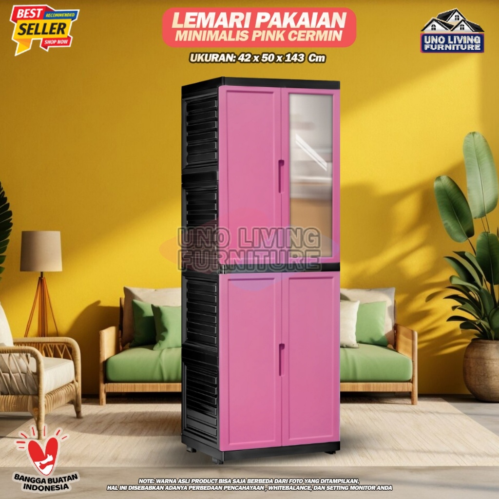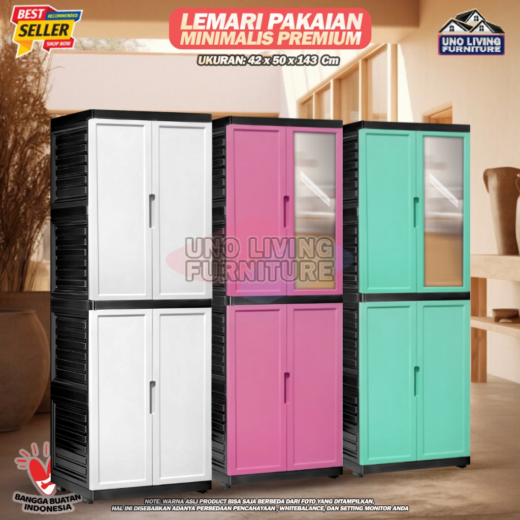 Lemari Pakaian Plastik Lemari Fawsline Pintu Panjang Dengan Kaca Lemari Premium
