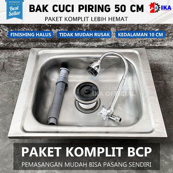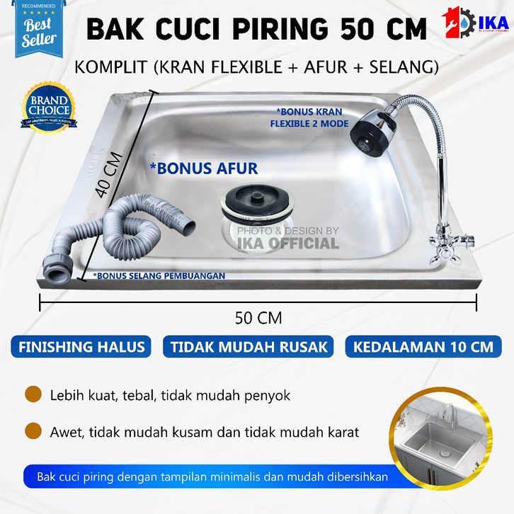 Bak cuci piring Kitchen sink stainless steel 50 x 40 cm Paket Bak Cuci Piring Afur Kran Fleksibel Cuci Piring Kitchen