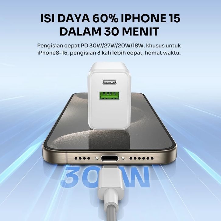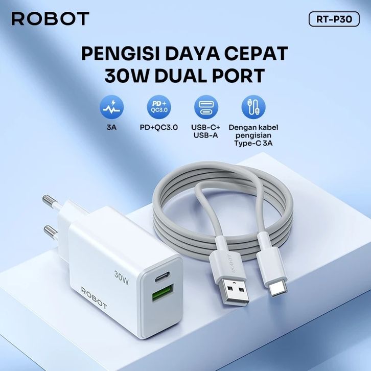Charger RT-P30 Batok Dual Output USB-A & Type-C Port 3A 30Watt Garansi Original Resmi ROBOT